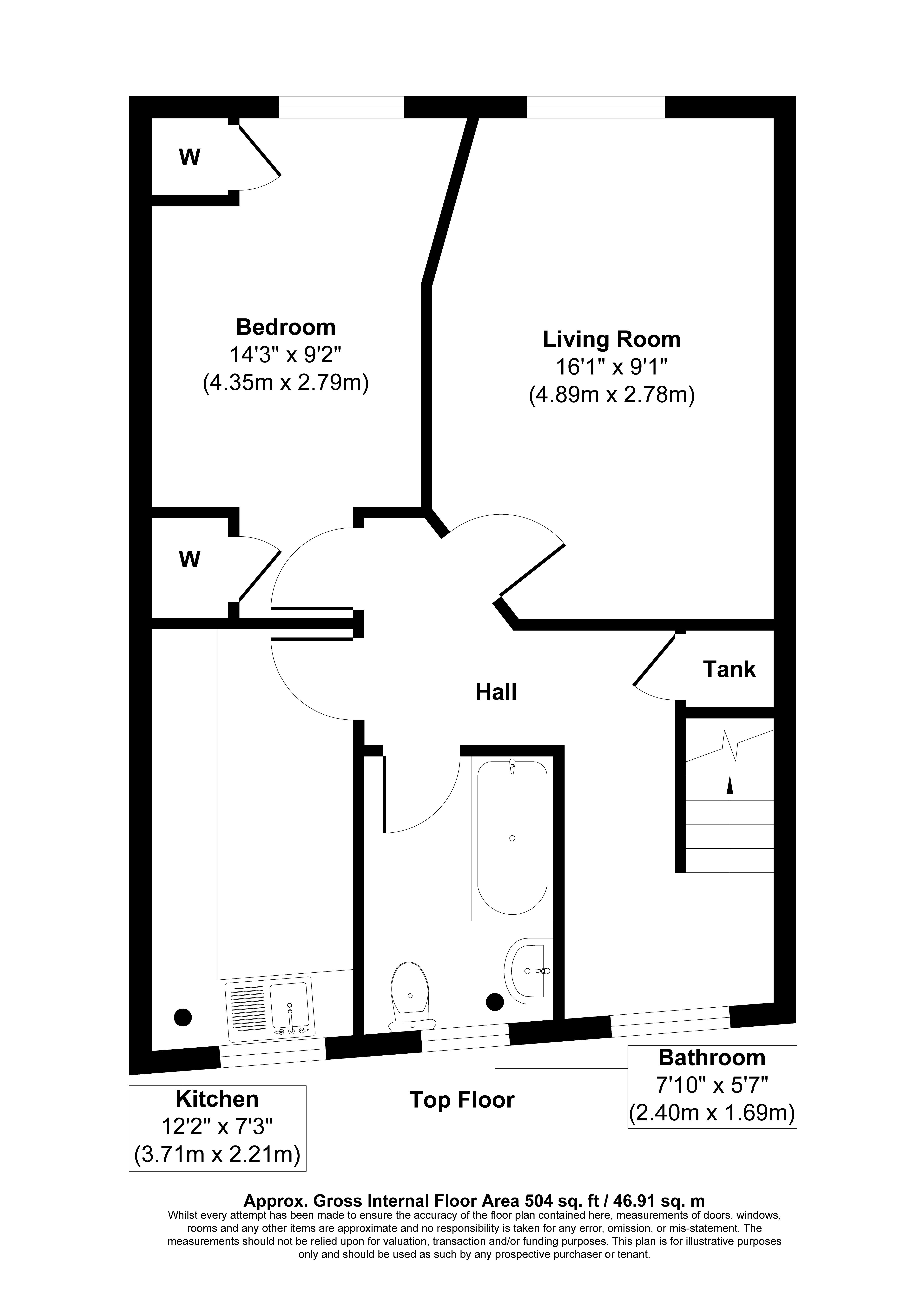 Town centre and top floor one bedroom flat