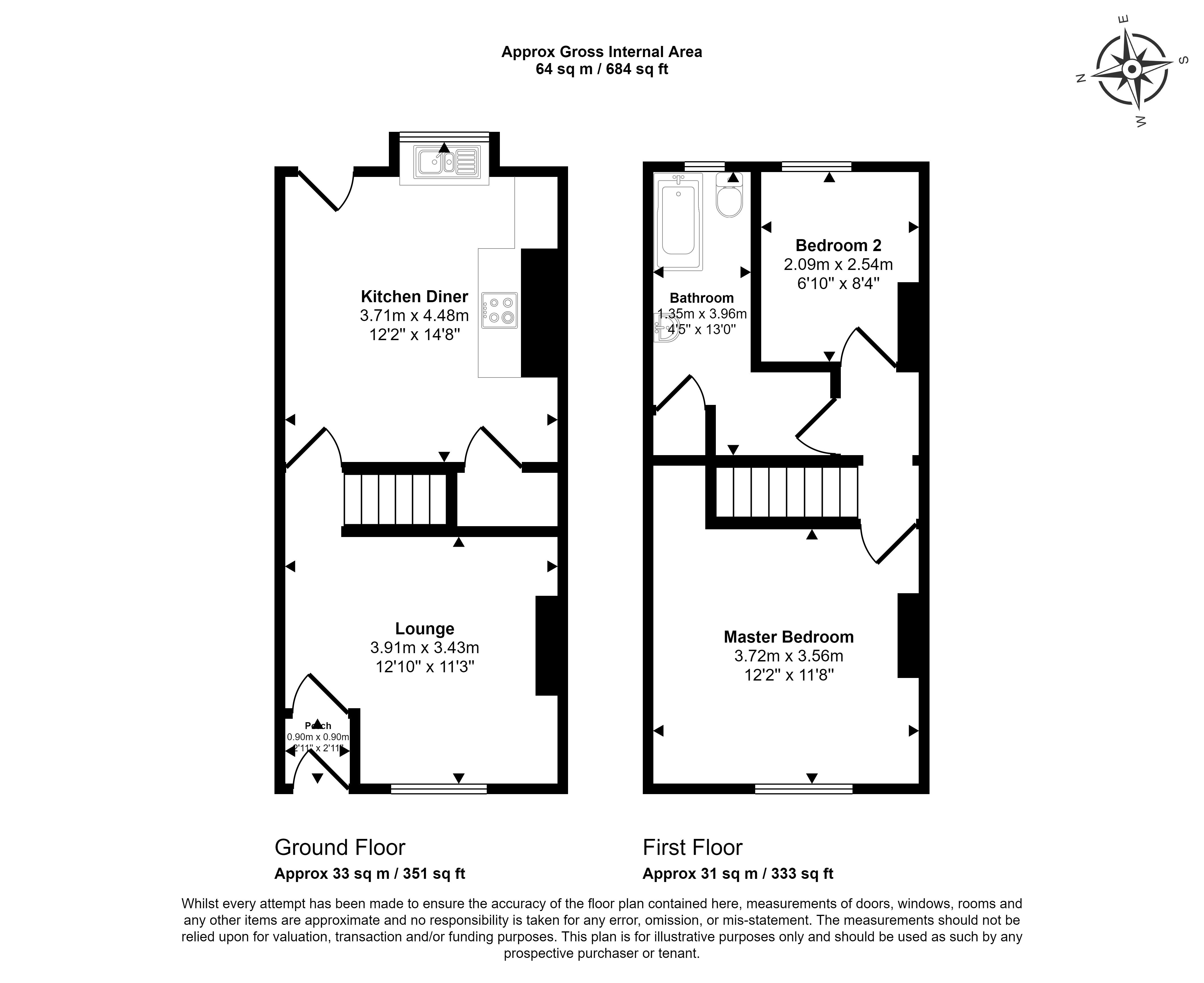 The property compromises of an Entrance Hall, a Living Room and a Kitchen on the ground floor. To the first floor is a double Bedroom, a single Bedroom and a Bathroom.