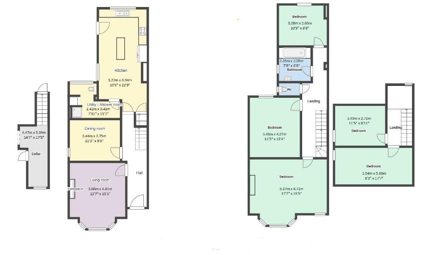 The ground floor of this splendid residence offers a wealth of spacious living areas, starting with a beautifully appointed bay-fronted living room. The adjacent dining room provides a wonderful setting for formal dinners or casual gatherings and its original features showcase the house's rich heritage. The heart of the home is undoubtedly the modern fitted kitchen, complete with a stylish island for meal preparation and casual dining. It seamlessly connects to the cellar, a versatile space ready to be transformed according to your needs and a utility/shower room for added convenience.