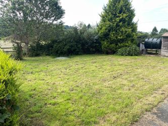 Outside Gated access driveway with loose gravelled hard standing, established ornamental trees, pathways to side leading to south facing rear garden enclosed by privy hedge, timber built garden store shed, old dog kennels, PVC oil tank.