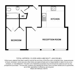Hall, Lounge with fitted kitchen. Double bedroom and bathroom.