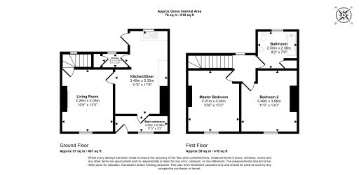 The property compromises of an Entrance Hall, a Living Room, a Kitchen-Diner and a small storage room on the Ground Floor. To the first floor are 2 double Bedrooms, and a Bathroom.