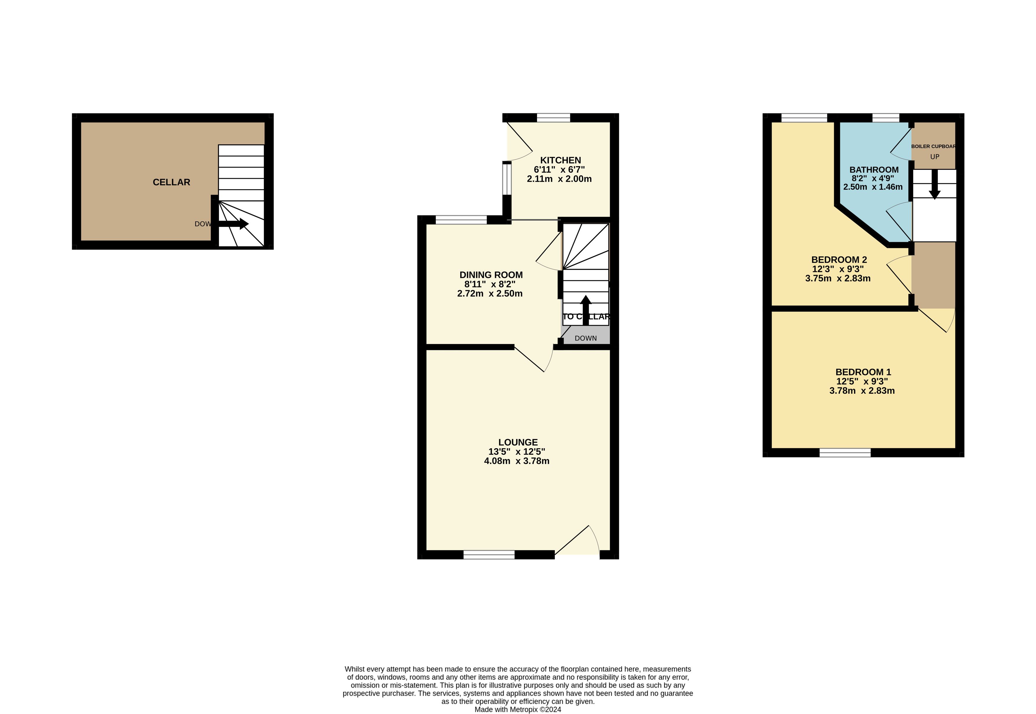 The property has double glazing, a gas combi boiler heating system, and comprises a lounge, dining room, kitchen, cellar, two first floor bedrooms and a spacious bathroom, outside is a private and enclosed rear garden, in need of cultivation.