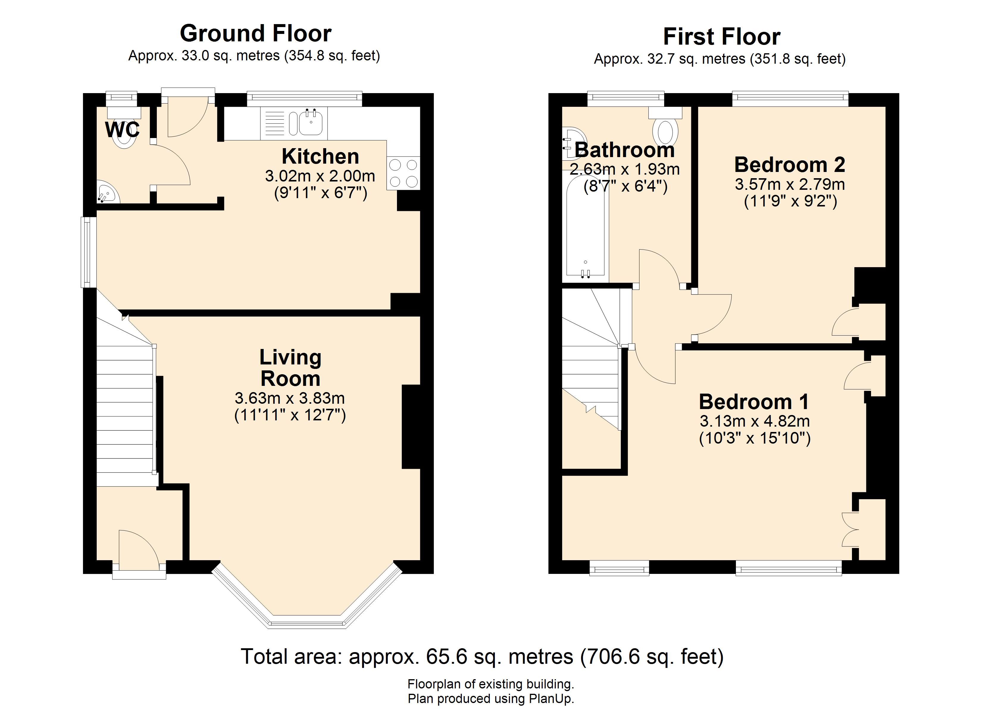 The property is gas centrally heated and double glazed and provides accommodation that comprises: Entrance Hall, Living Room with bay window to front, a fitted Dining Kitchen with gas hob and electric oven (and Worcester gas boiler), rear Entrance Hall and WC Cloaks. To the first floor are 2 Double Bedrooms and a Bathroom.