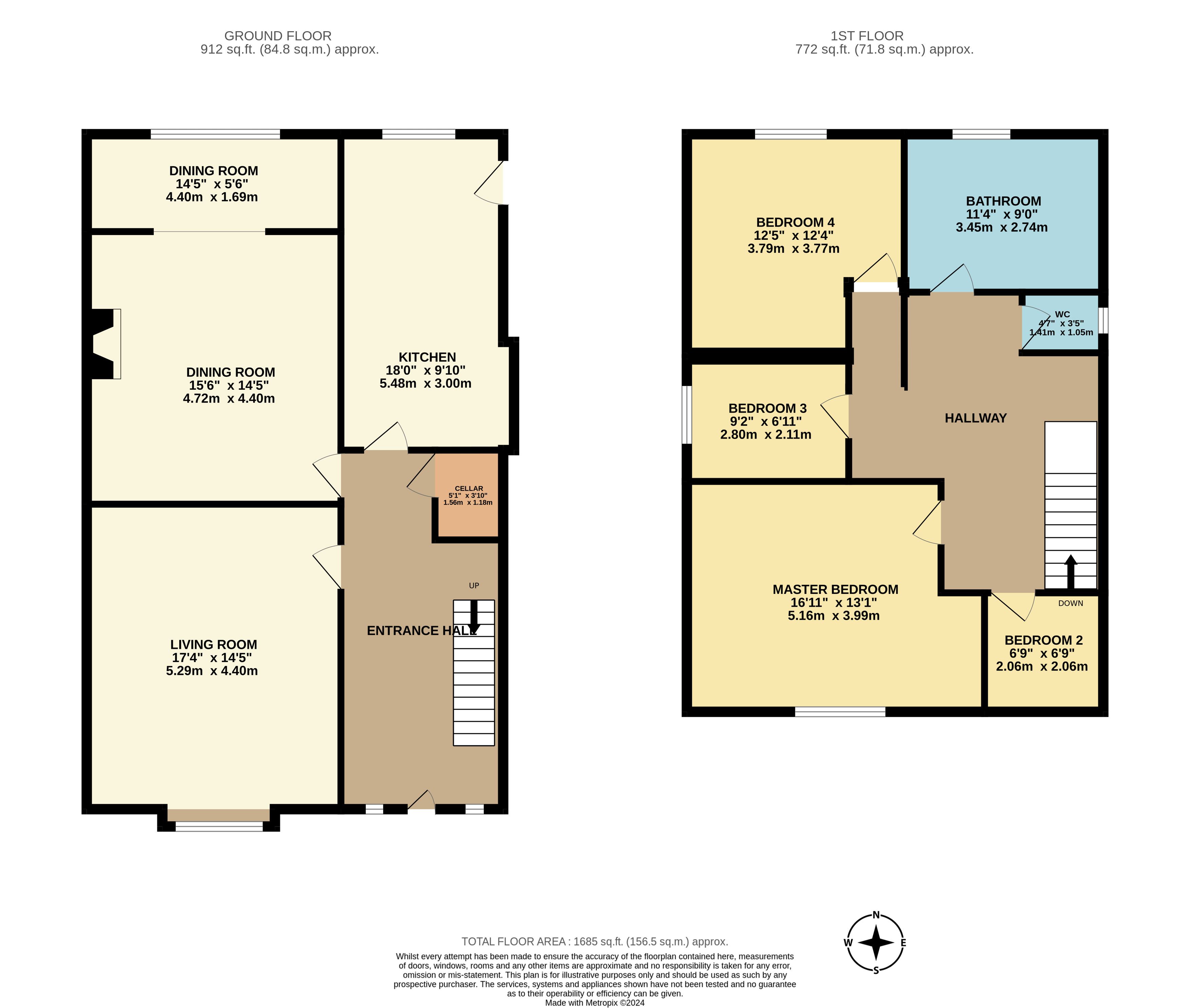 First floor: Four bedrooms, shower room/WC, WC, landing