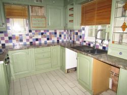 uPVC double glazed window to the rear elevation, looking out to uPVC Sun Room, fitted kitchen comprising base, drawer and wall units with complementary work surface over and tiled splashbacks. Inset sink and drainer with mixer tap, integrated oven, four ring electric hob with extractor above and tiled flooring.