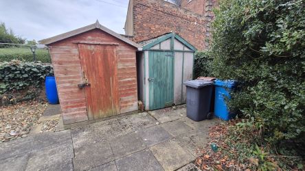 To the front of the property is a low-maintenance forecourt garden and two drives for off-street parking. There is also an asbestos single garage. To the rear is an area of mainly lawned garden and two garden sheds.