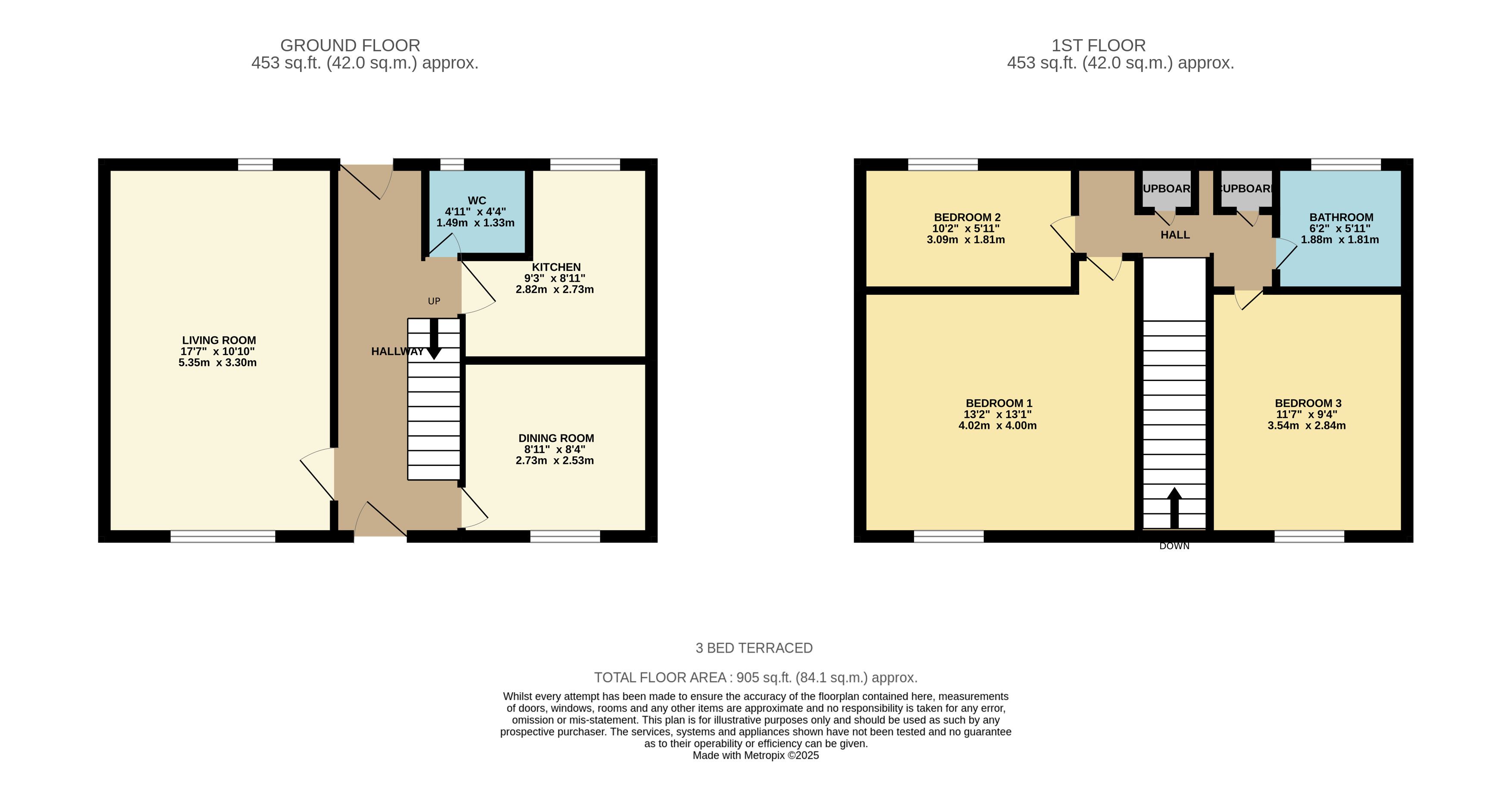 The ground floor comprises a spacious living room, kitchen, a dining room and downstairs toilet. The first floor features three bedrooms, including two doubles and a single, along with a bathroom.