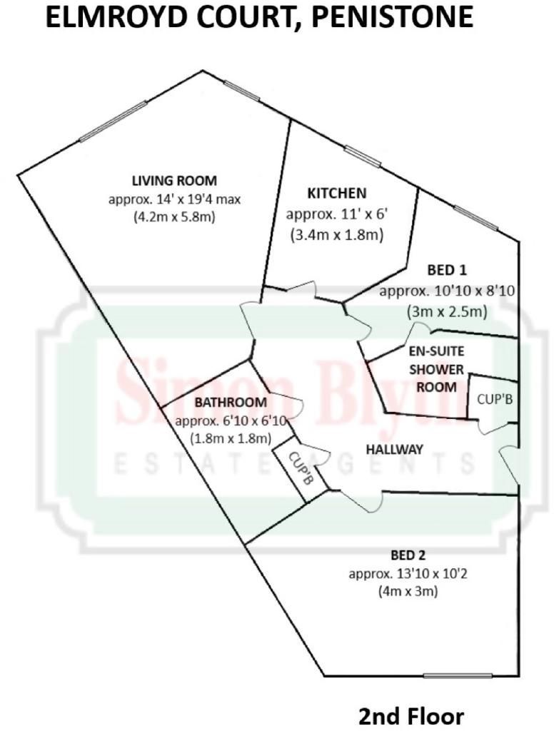 A secure entry system provides access to the communal entrance hall. An entrance door to the apartment leads to the hallway which provides access to the lounge, 5.5m x 3.9m (maximum overall dimensions), having window and electric heater (not tested). Kitchen, 3.4m x 1.5m, having a range of base and wall units, electric hob and oven, plumbing for automatic washing machine, insert sink/drainer, and space for a fridge/freezer, together with a double glazed window and complementary splash-back tiles. Bedroom One, 3.5m x 2.4m (mximum overall dimensions), having double glazed window and electric heater (not tested). En Suite, 2.4m x 2.7m (maximum overall dimensions), having shower cubicle, wash hand basin, and WC. Bedroom Two, 4.2m x 3.1m, having double glazed window and electric heater (not tested). Bathroom 2.0m x 2.0m, having a bath, WC, and wash hand basin.