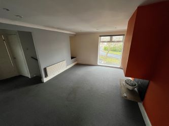 Full-length front facing window, inset storage space over stairs, central heating radiator, spotlights to the ceiling and a wall mounted boiler enclosed within a cupboard. Wall mounted gas fire situated on a feature chimney breast. With access off to the kitchen, two bedrooms and family bathroom.