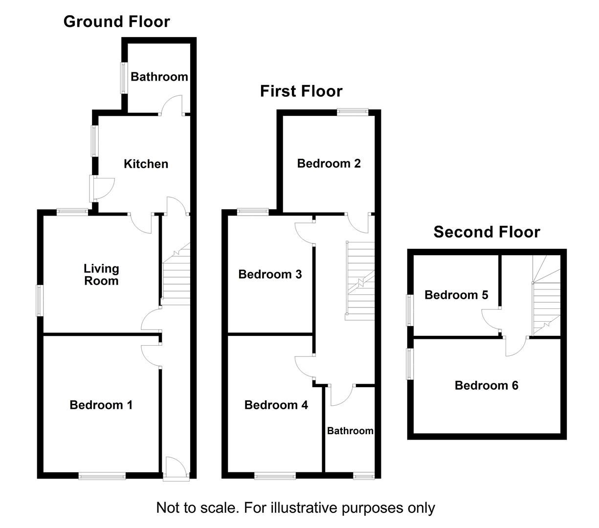 FIRST FLOOR Landing, bedroom two, bedroom three, bedroom four and bathroom.