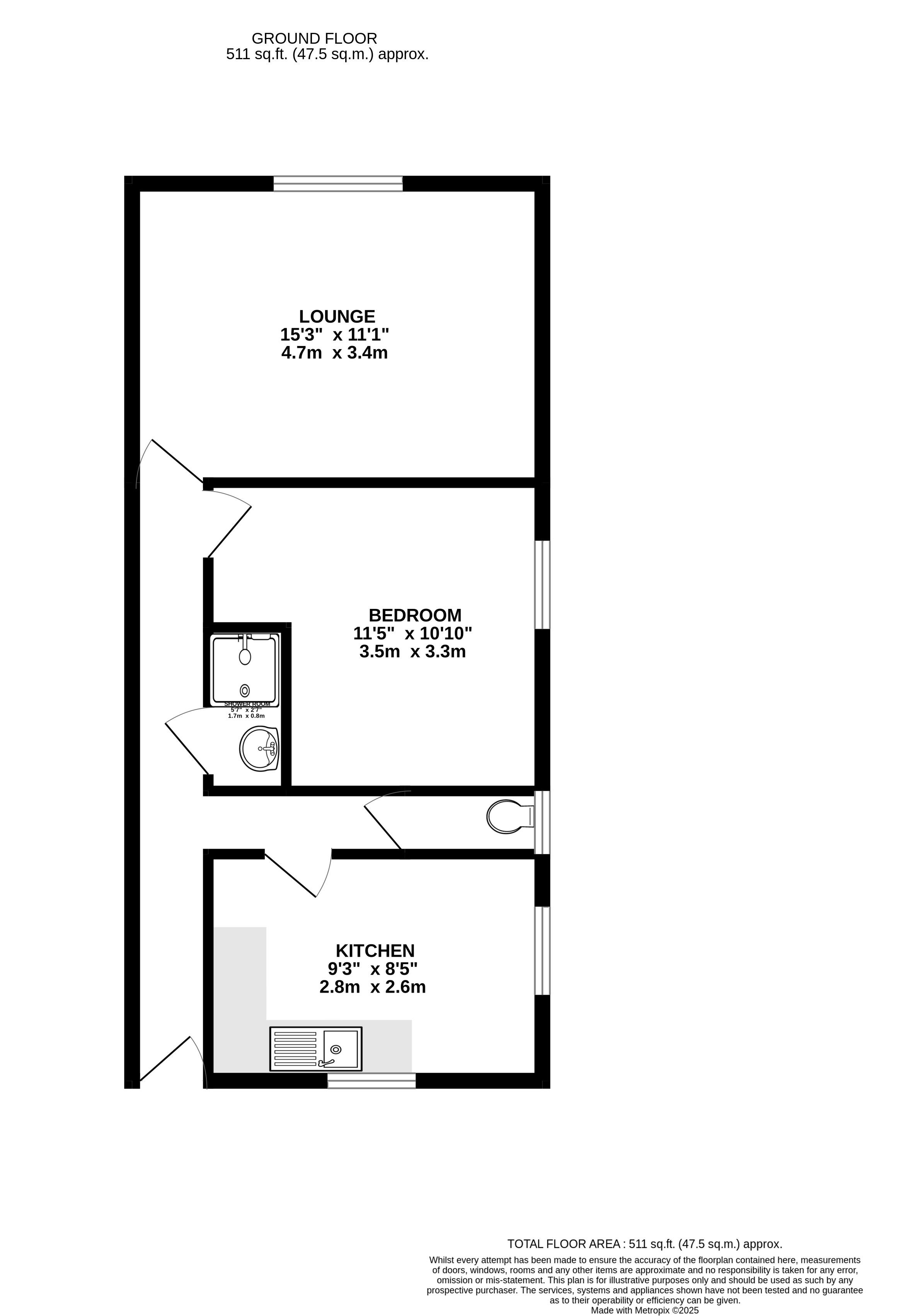 Kitchen: 2.8m x 2.6m