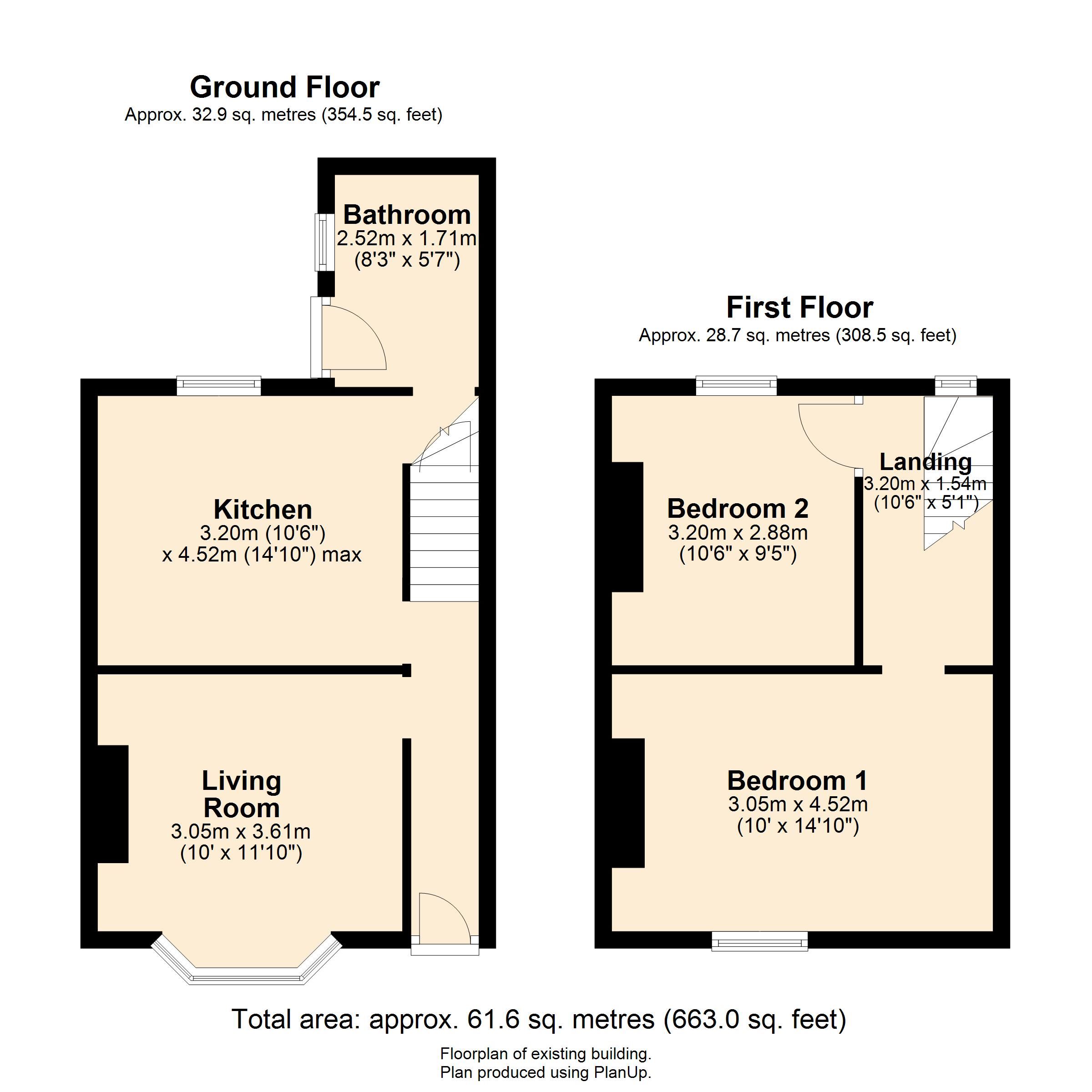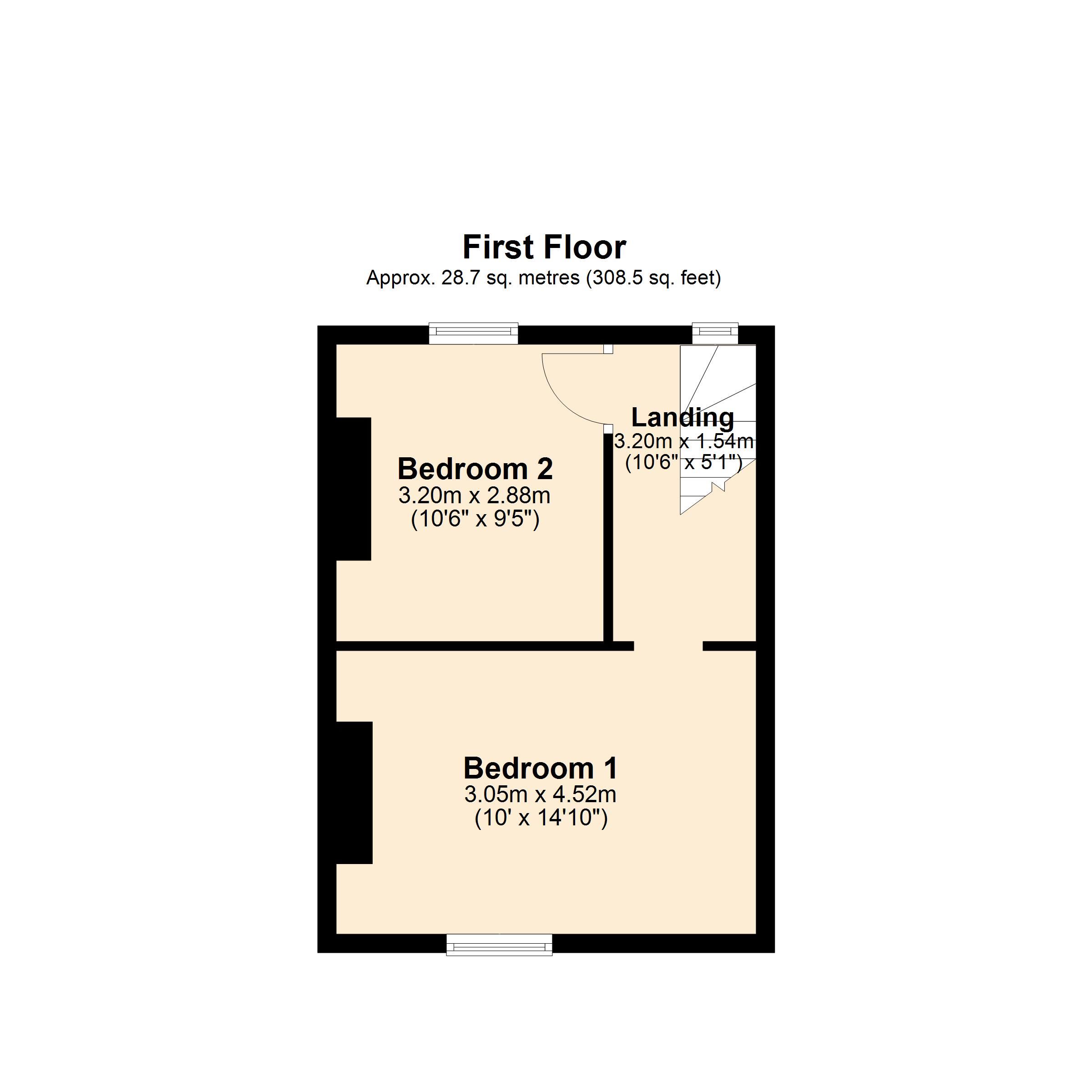 First Floor: Landing, two bedrooms.