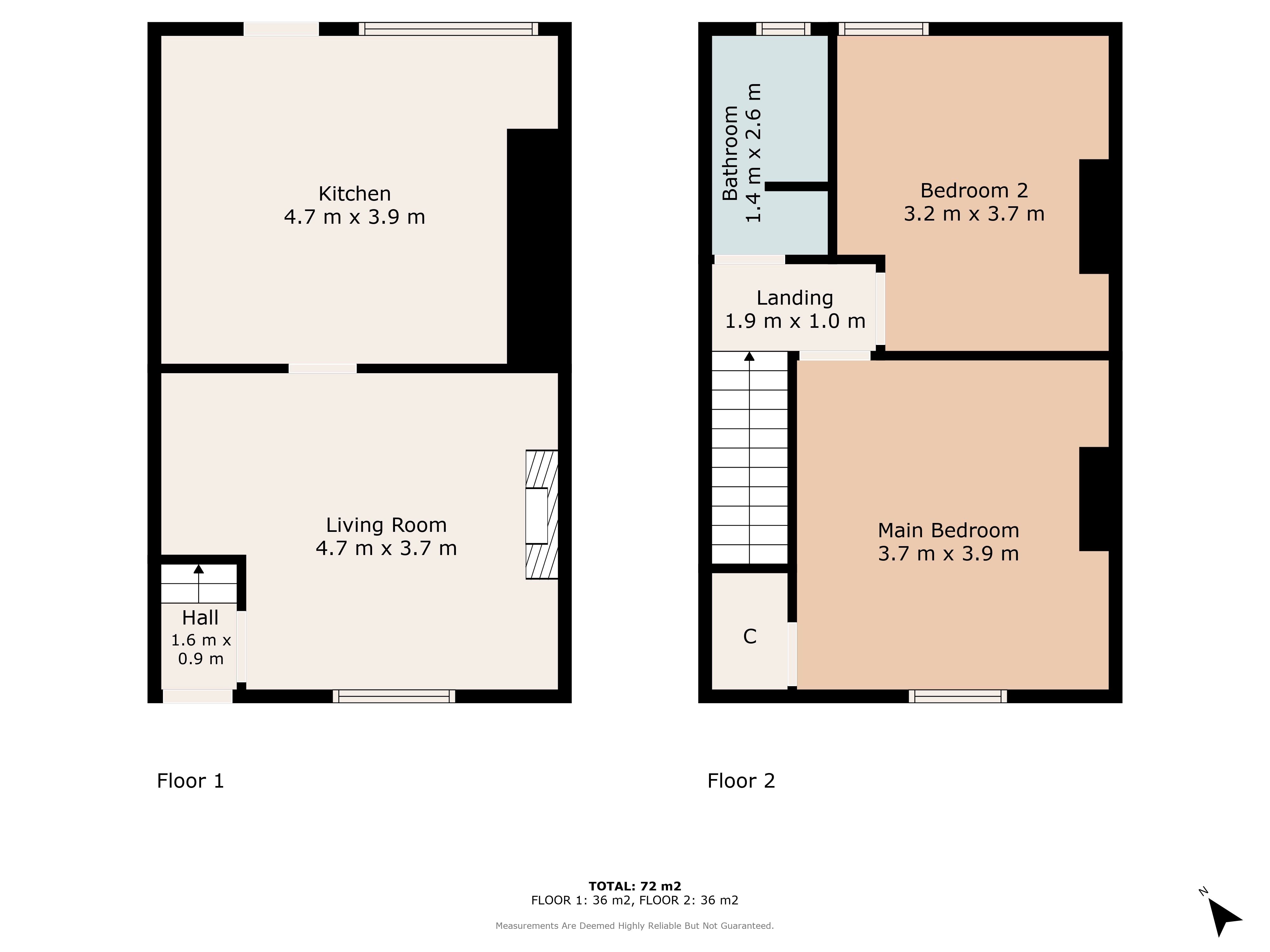 The property compromises of an Entrance Hall, a Living Room, and a Kitchen downstairs. To the first floor are 2 Bedrooms and a Family Bathroom.