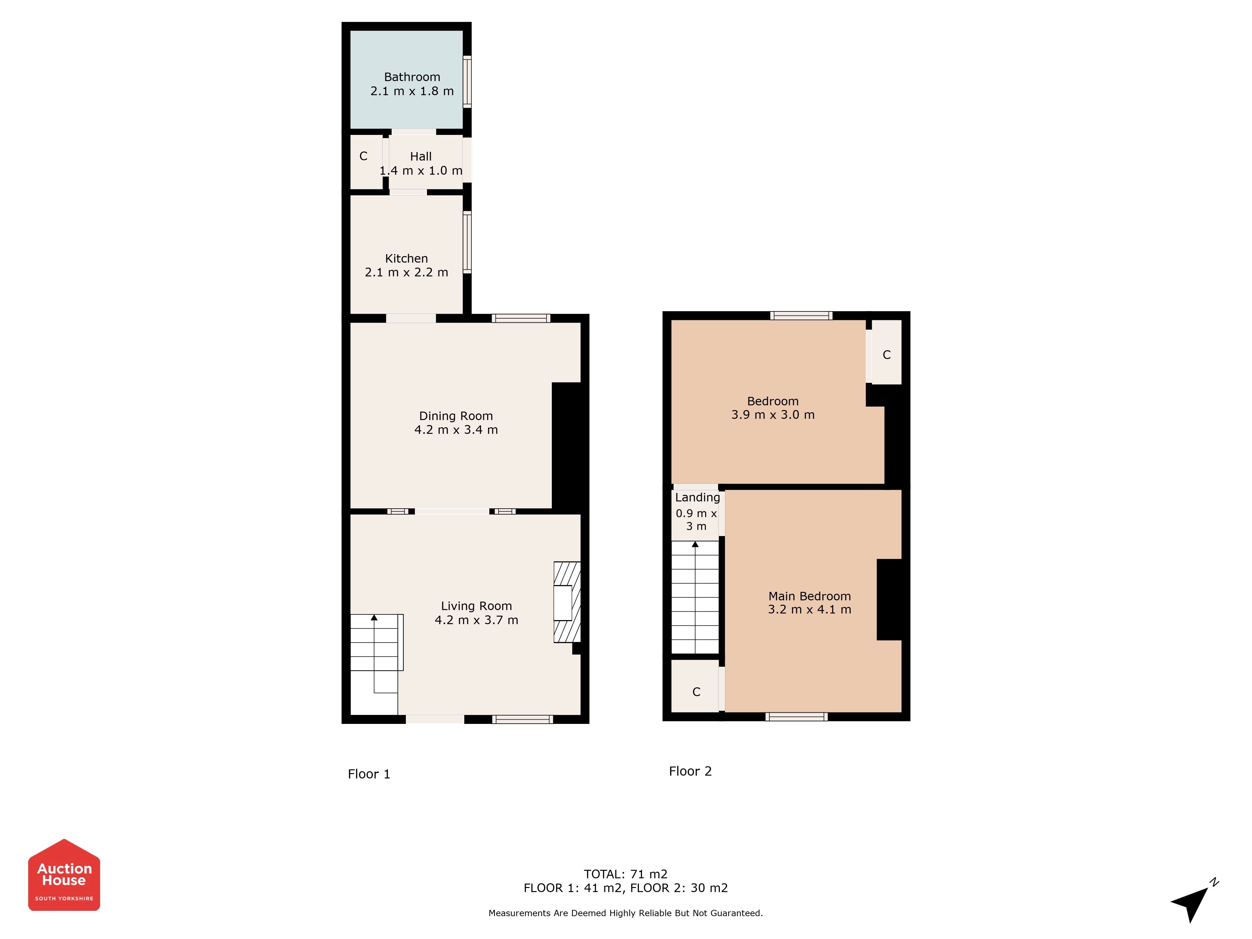 The property compromises of a Living Room, a Dining Room, a Kitchen, and a Bathroom to the ground floor. On the first floor are 2 Bedrooms.