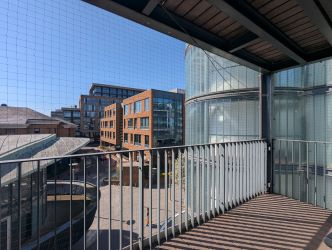 With its own private balcony and parking space, the apartment has one bedroom, open plan kitchen and living room, bathroom and study.