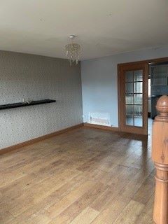 A vacant end terrace house comprising: Hall Lounge, kitchen, two bedrooms and bathroom.