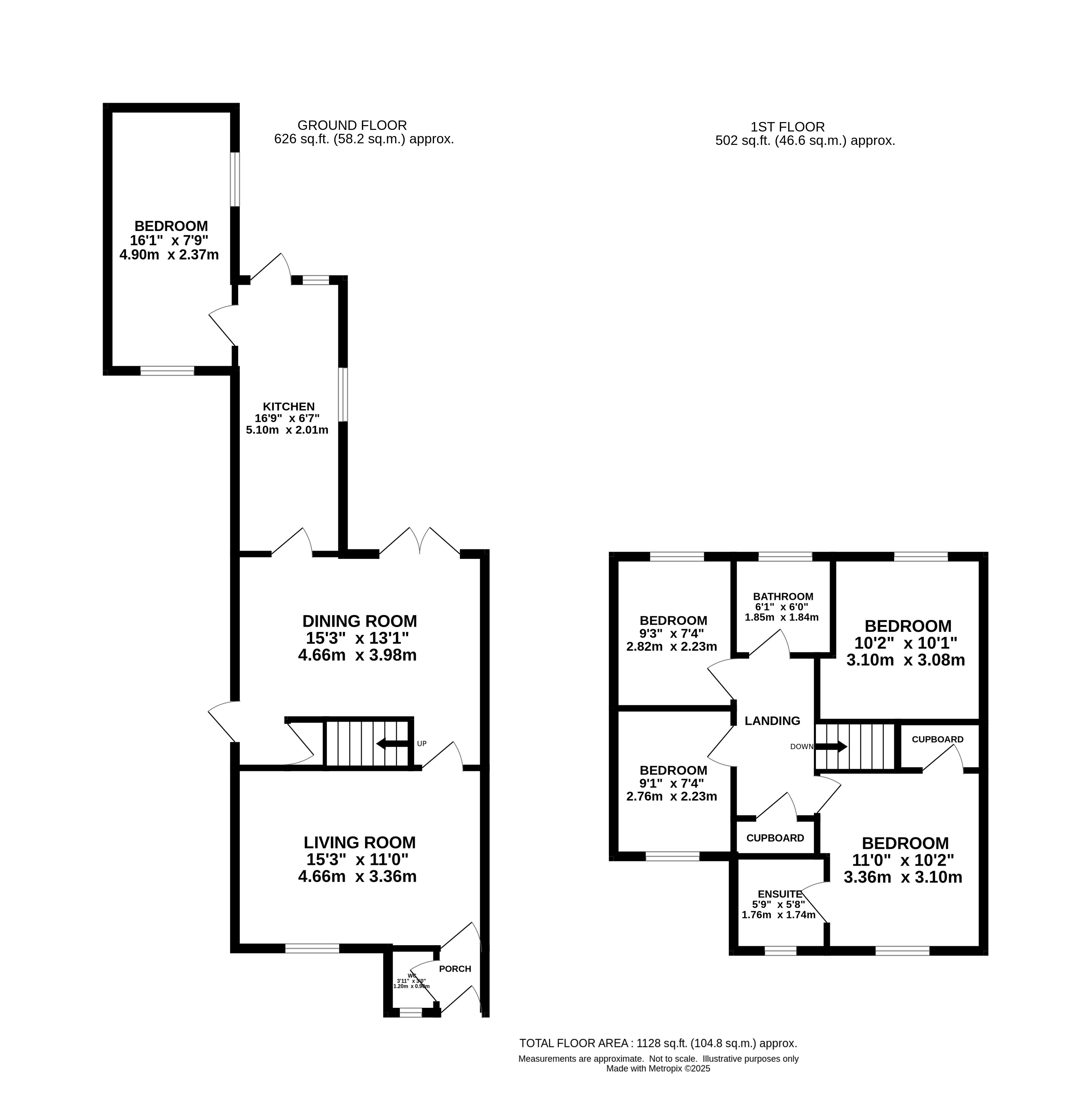 First Floor Four bedrooms, one ensuite and a family bathroom.