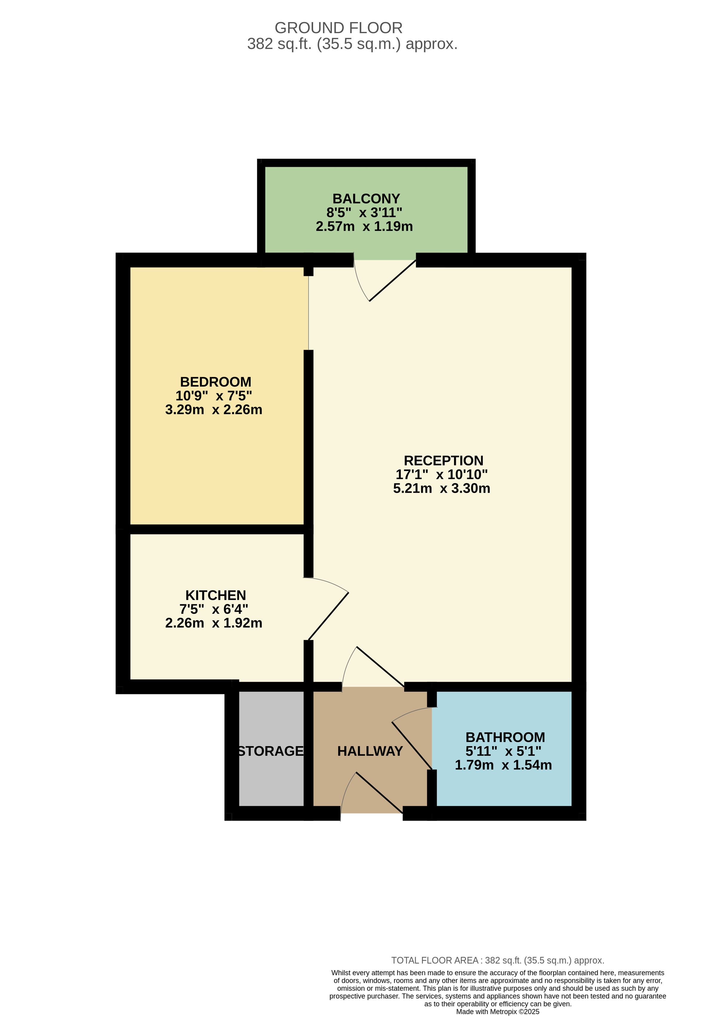 Comprising of an entrance hallway with storage cupboard leading to a bathroom, lounge, kitchen, bedroom, and with a balcony.
