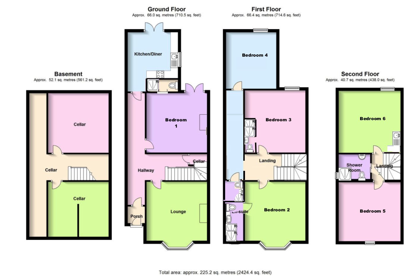•{tab}First Floor: Three large double Bedrooms, each with its own En-Suite Bathroom.