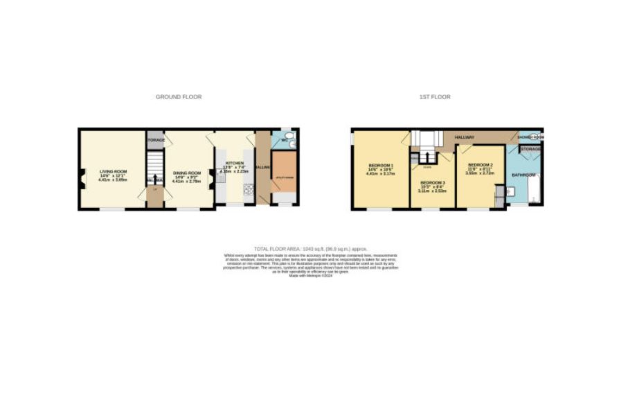 The property comprises a three bedroom detached house arranged over ground and first floors.
