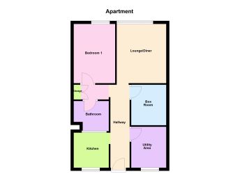 Accommodation Front Door leads to Hallway (5.35m x 3.05m), which enables access to Kitchen (2.21m x 2.25m), Utility Area (2.64m x 2.25m), Box Room (2.59m x 2.28m), Lounge/Diner (3.83m x 3.19m), Bedroom (3.93m x 2.70m), Bathroom (1.75m x 2.25m) and Hallway Storage (0.97m x 0.55)