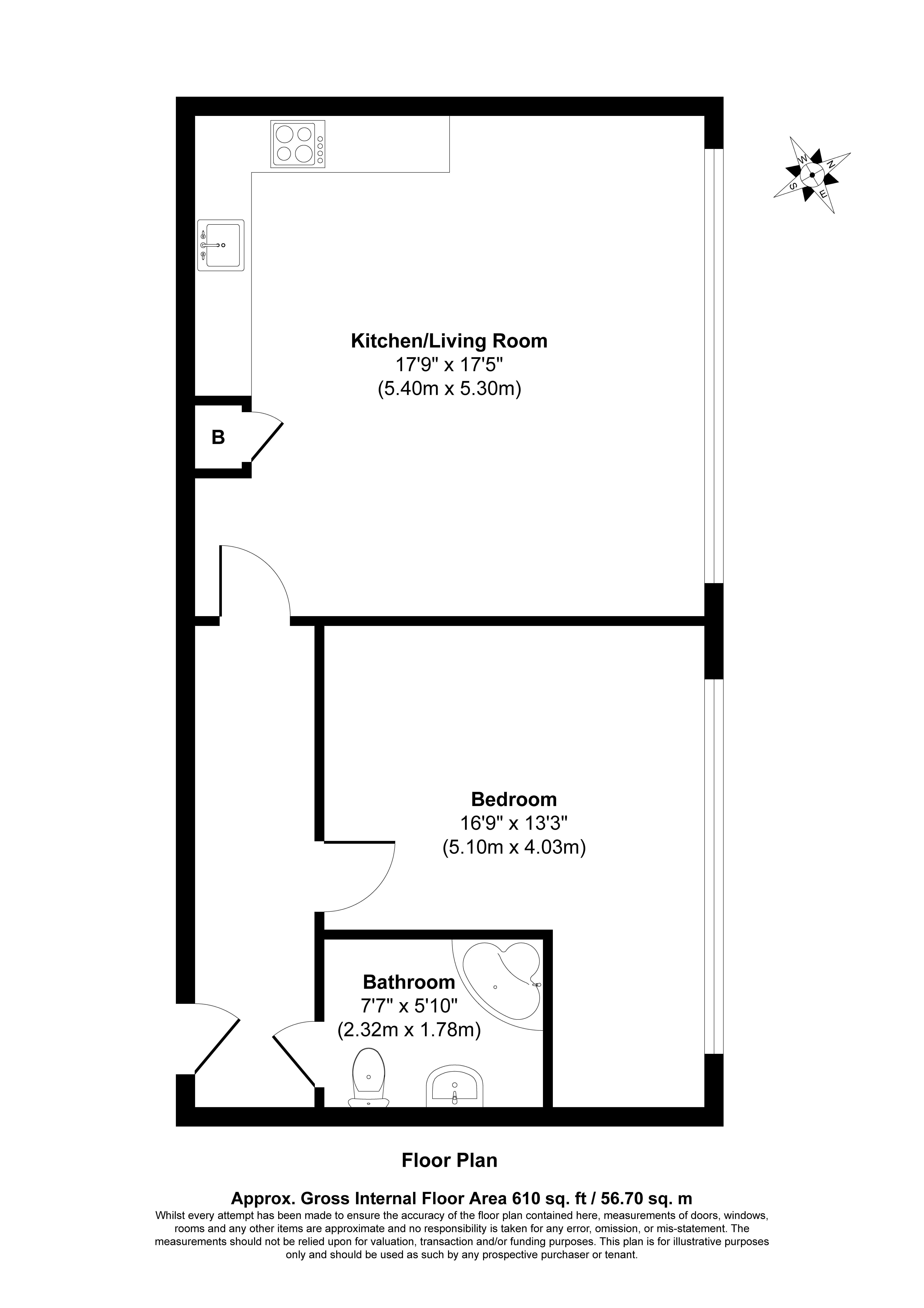 Located next to the Grand Union canal, the property comprises an entrance hall, an open plan kitchen/living room, bedroom and bathroom.
