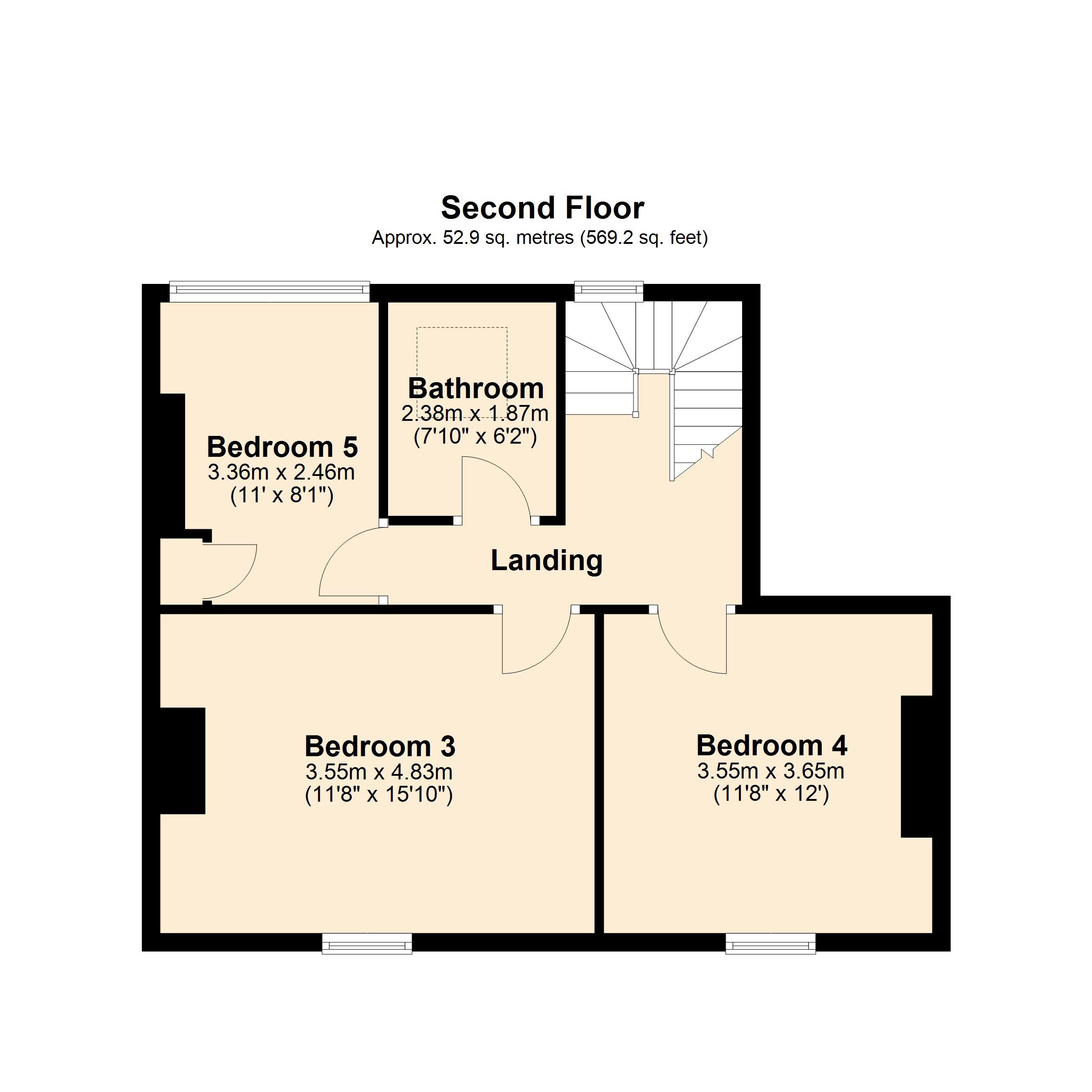 Second floor: Landing leading to three further Bedrooms and Bathroom.
