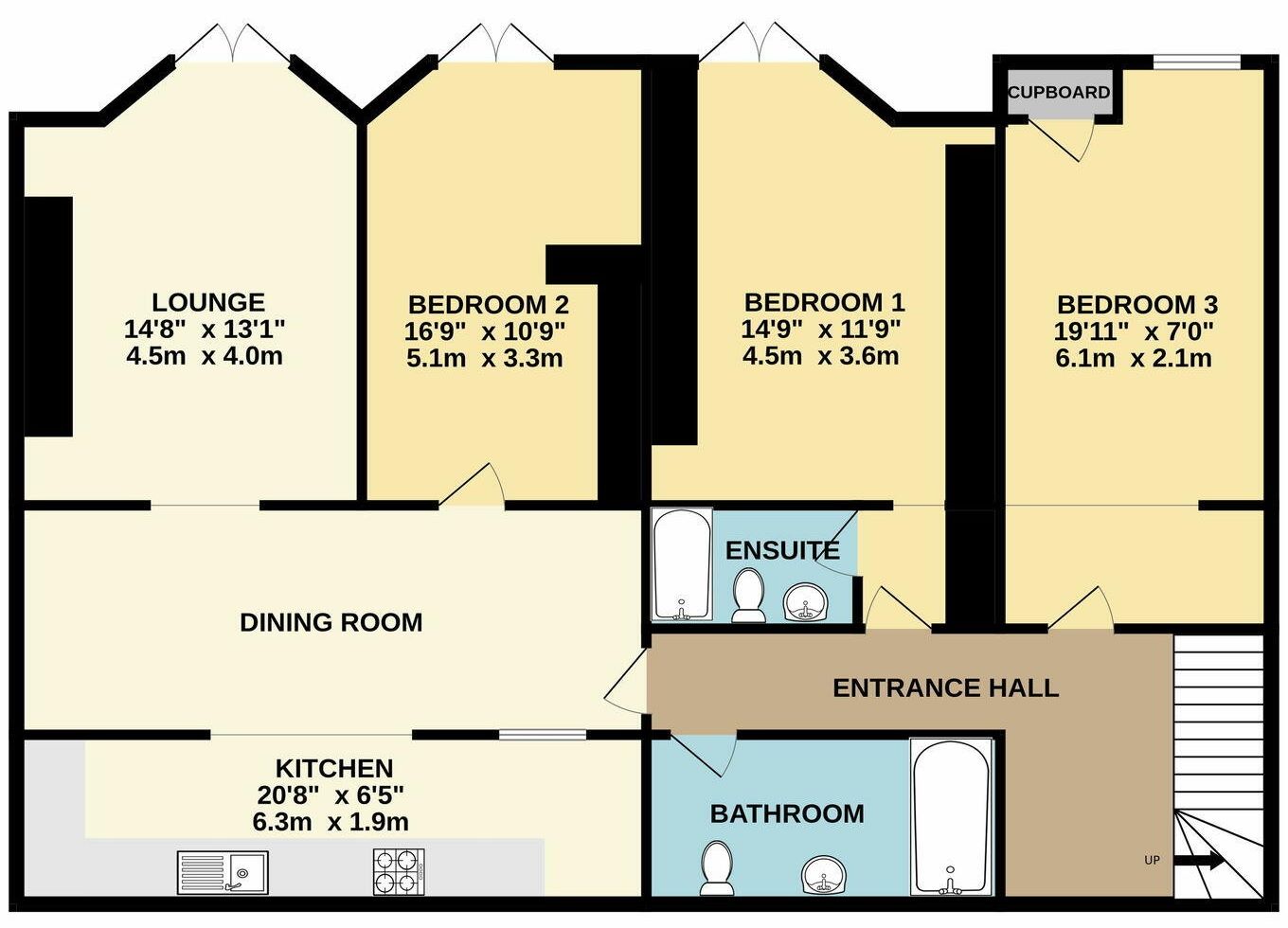 Spacious vacant 3 bedroomed basement flat with own entrance and garden close to Torquay Harbour. Leasehold 108 years remaining.