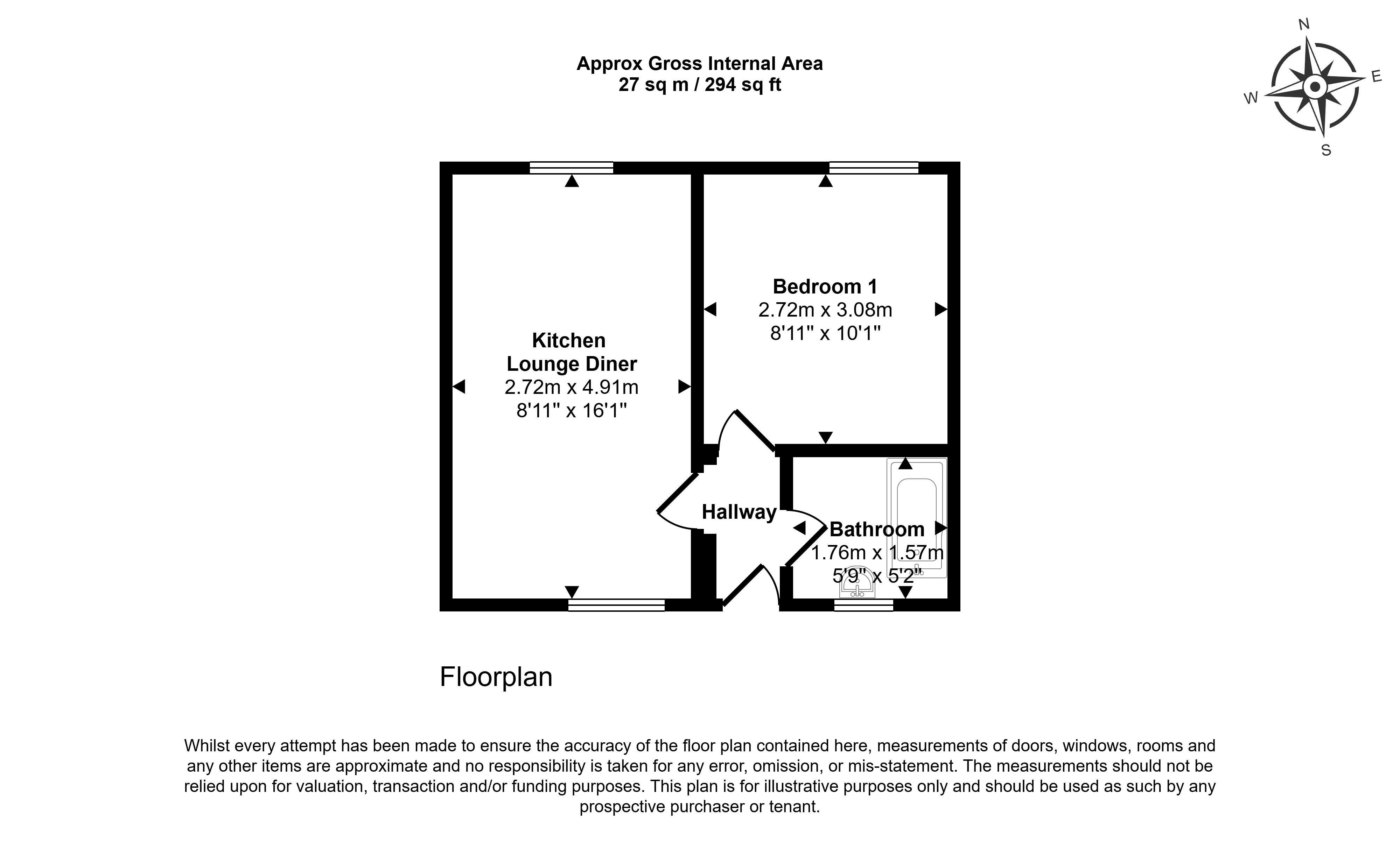 The property compromises of an Entrance Hall, an open-plan Living Room-Kitchen, a double Bedroom and a Bathroom.