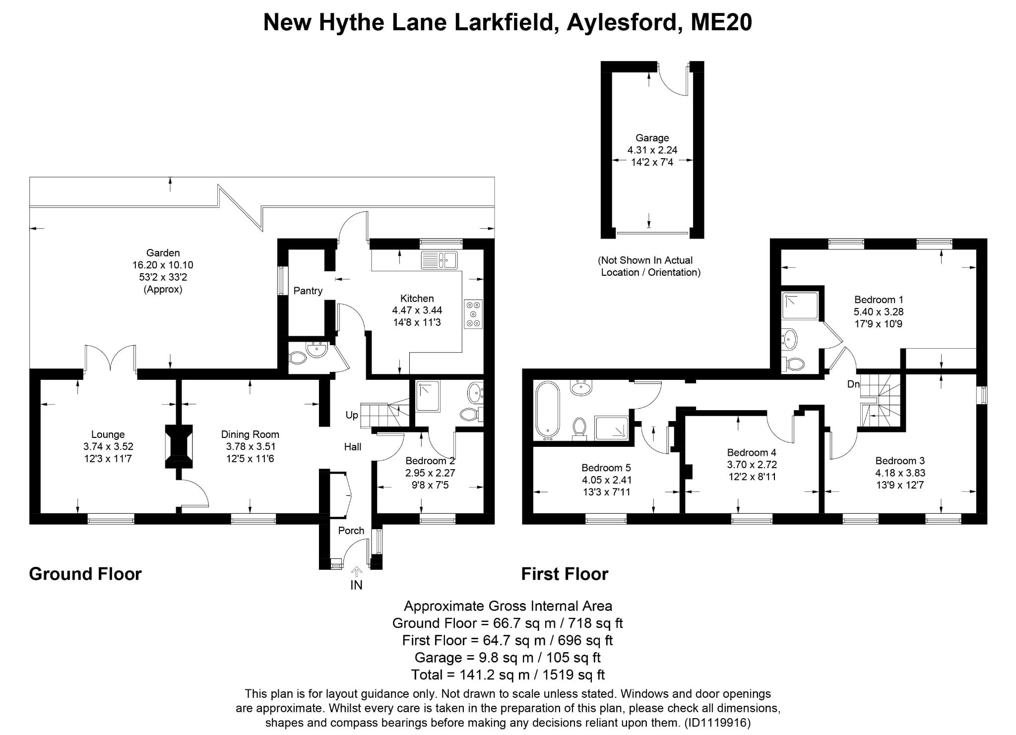 Outside L-shaped rear garden, garage, off road parking