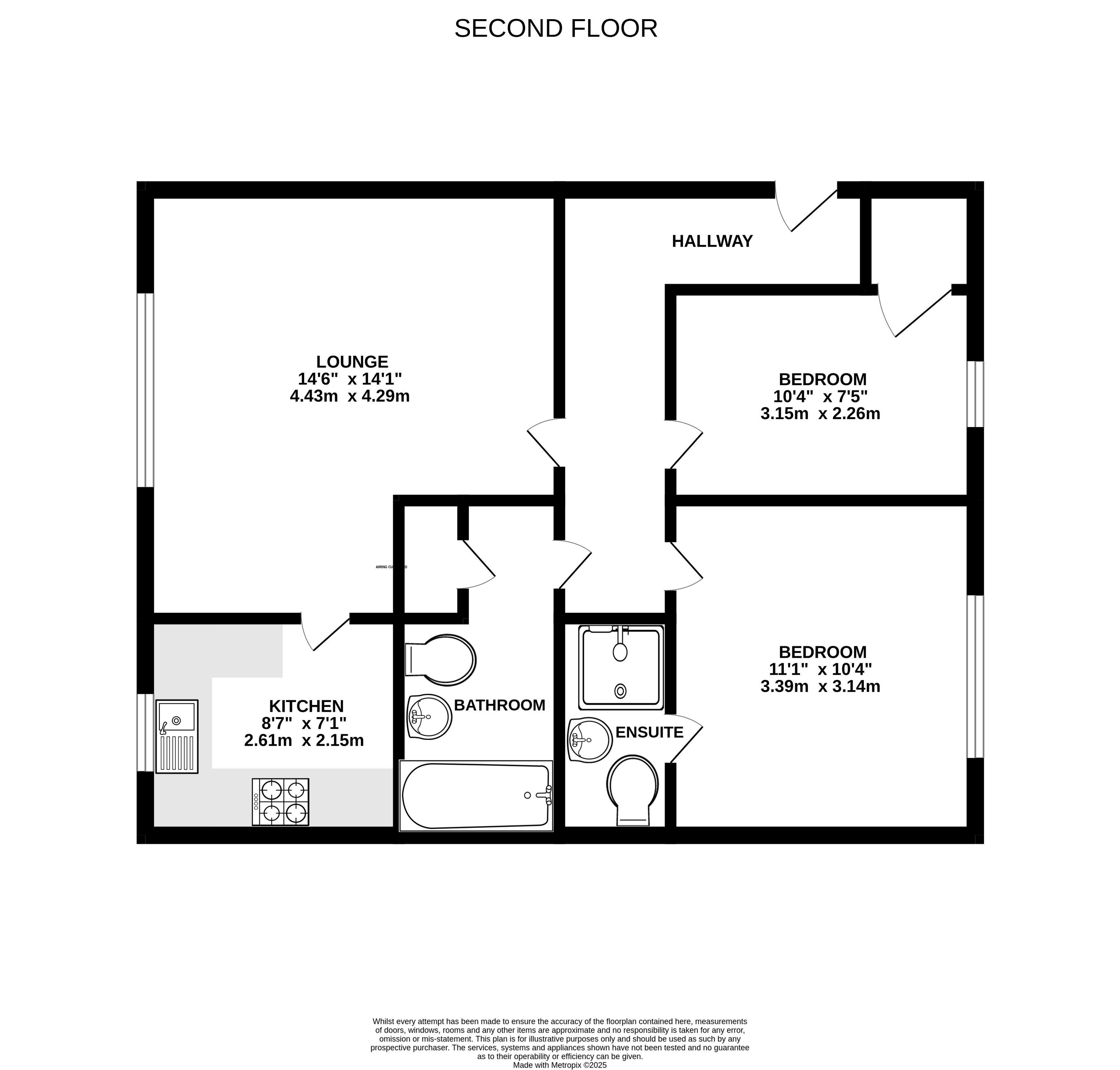 Second Floor Apartment Entrance hall, living room, kitchen, two bedrooms, one en-suite bathroom and main bathroom