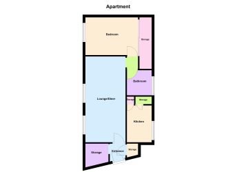 Accomodation Entrance Area leads to Lounge/Diner (6.37m x 3.00m), with doorway leading off to Kitchen (2.73m x 1.78m). Doorway at the far end of the Lounge/Diner gives access to Bathroom (1.86m x 1.75m) and Bedroom (2.80m x 3.94m) with Bedroom Storage (3.82m x 0.91m).