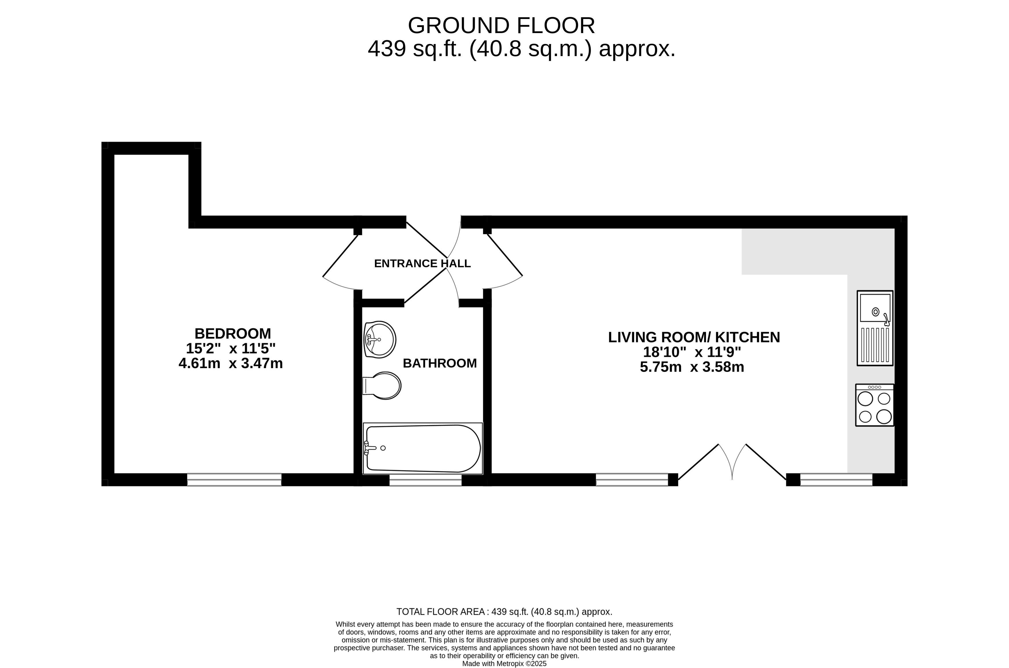 Ground Floor Flat Living room/kitchen, bedroom and bathroom