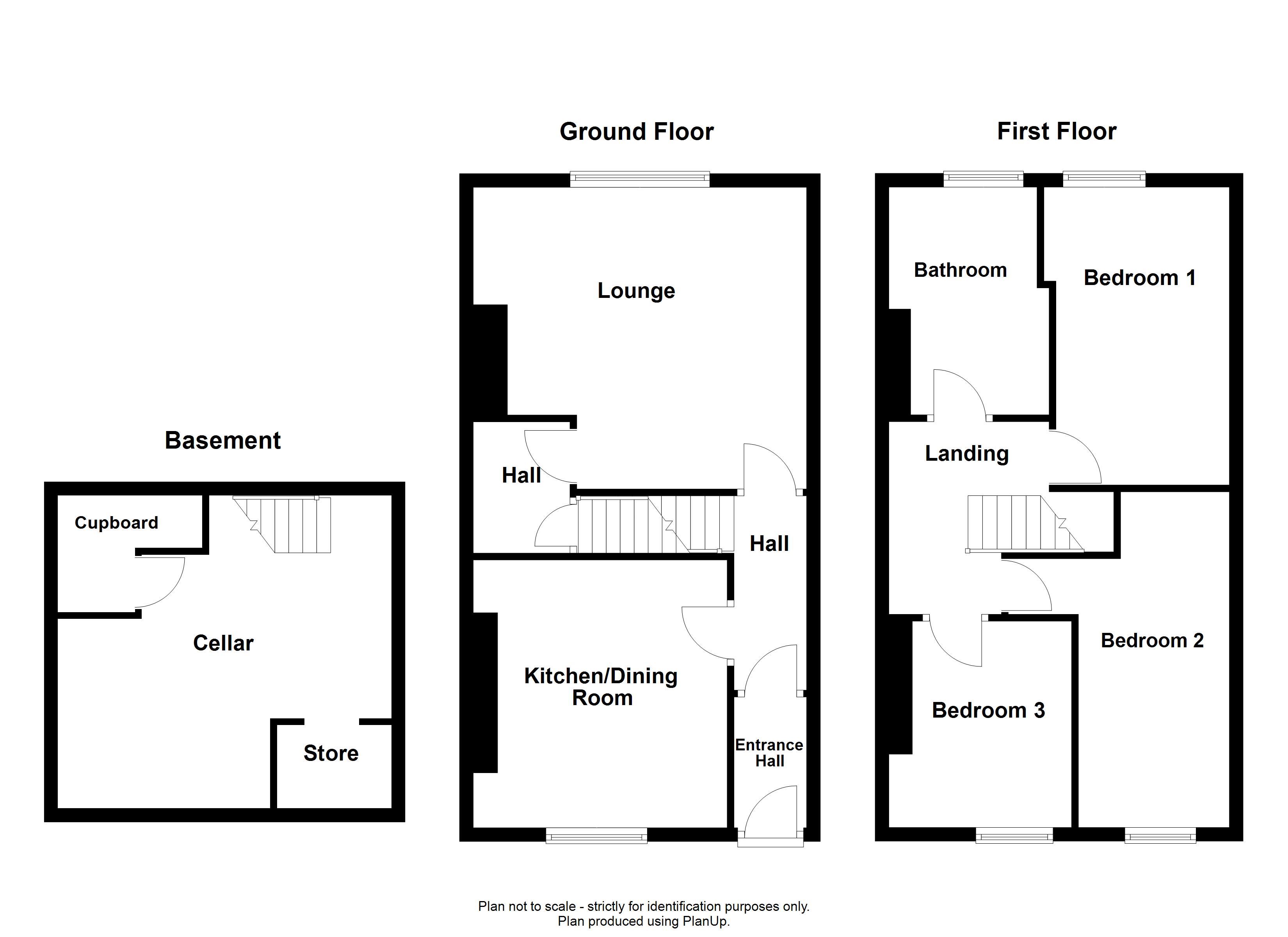 Internally, accommodation comprises entrance hall, kitchen diner and lounge to the ground floor. To the first floor are three bedrooms and a bathroom. There is also a cellar to the lower ground floor.