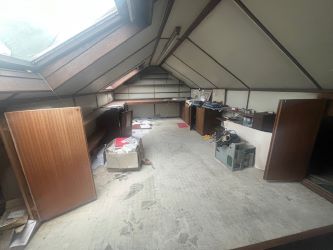 Situated on a corner plot, the property offers off road parking for several vehicles and gardens to the side and rear. There was a three-car garage which has been damaged by the fire but space to re-create this if needed.