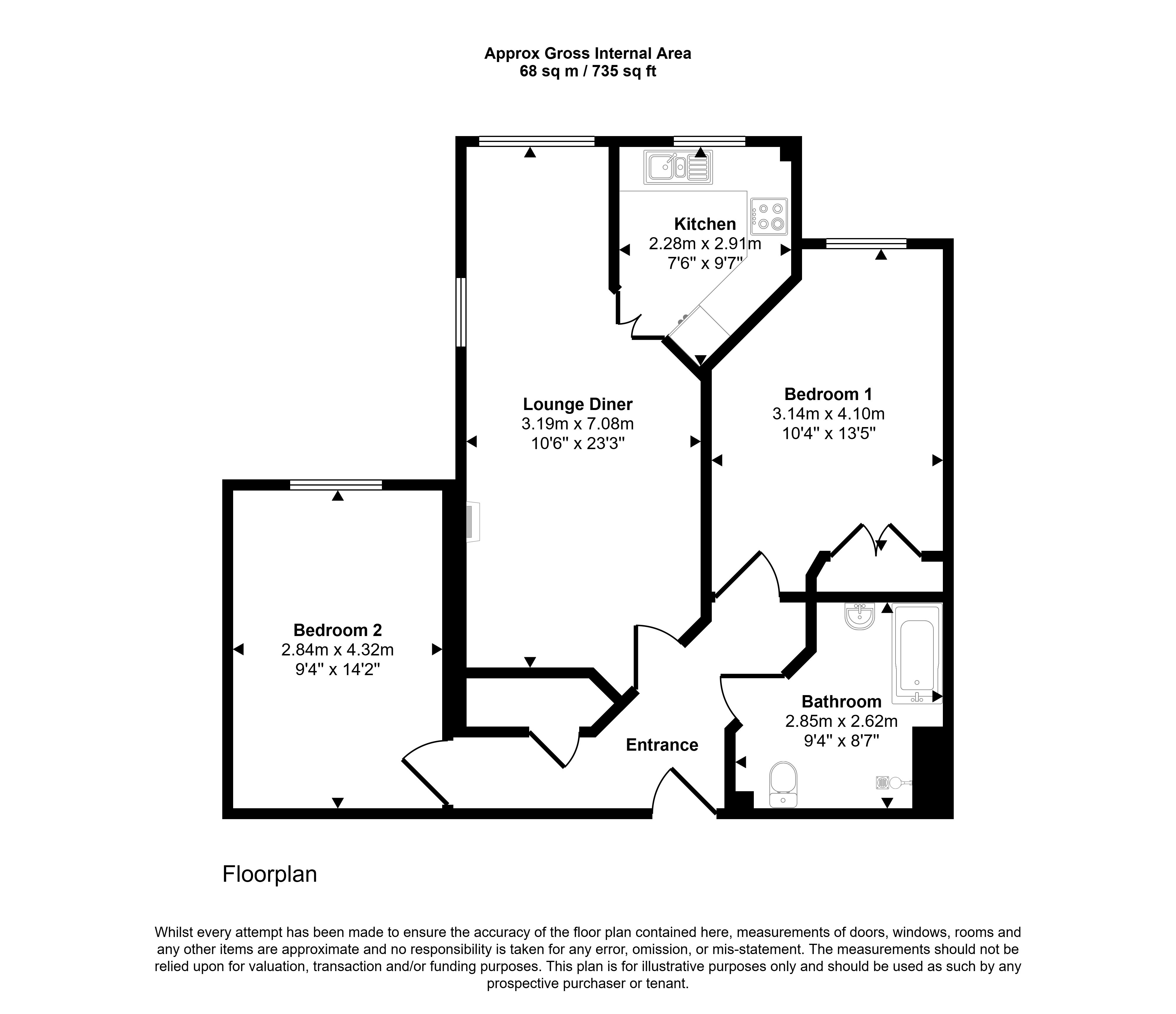 Comprising of an entrance hallway leading to a lounge/diner, kitchen, bathroom, and two bedrooms. This property is being sold with vacant possession, and forms part of a retirement building.