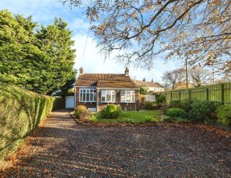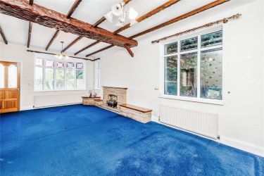 This charming bungalow welcomes you through a light-filled front porch, featuring two bay windows that could make an ideal space for relaxing or working from home. A generously sized lounge/diner offers traditional features including exposed beams and a stone fireplace with electric fire, creating a warm, homely feel.