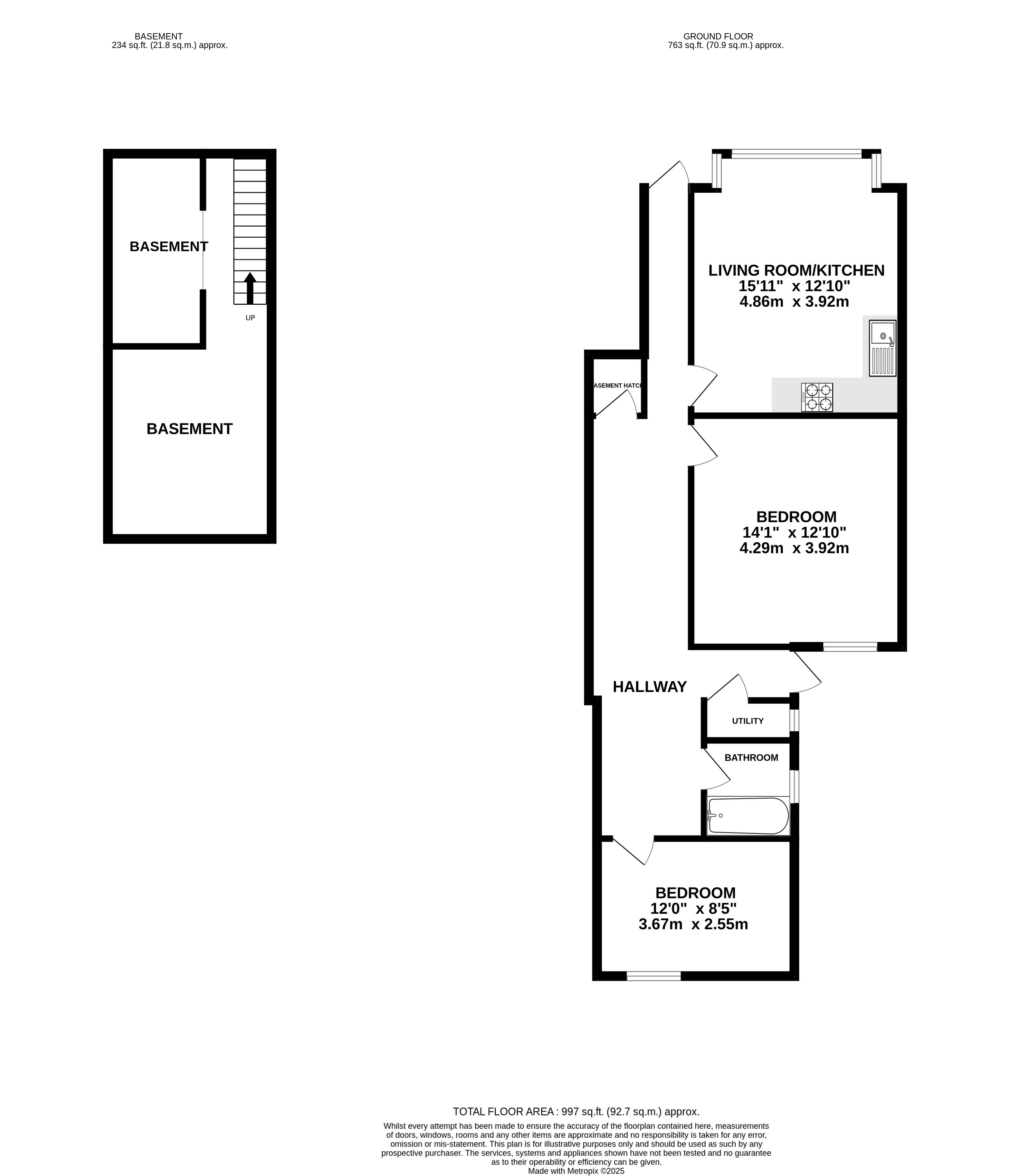 The flat comprises an entrance hall, living room/kitchen, utility, two bedrooms and a bathroom with the added benefit of a basement.
