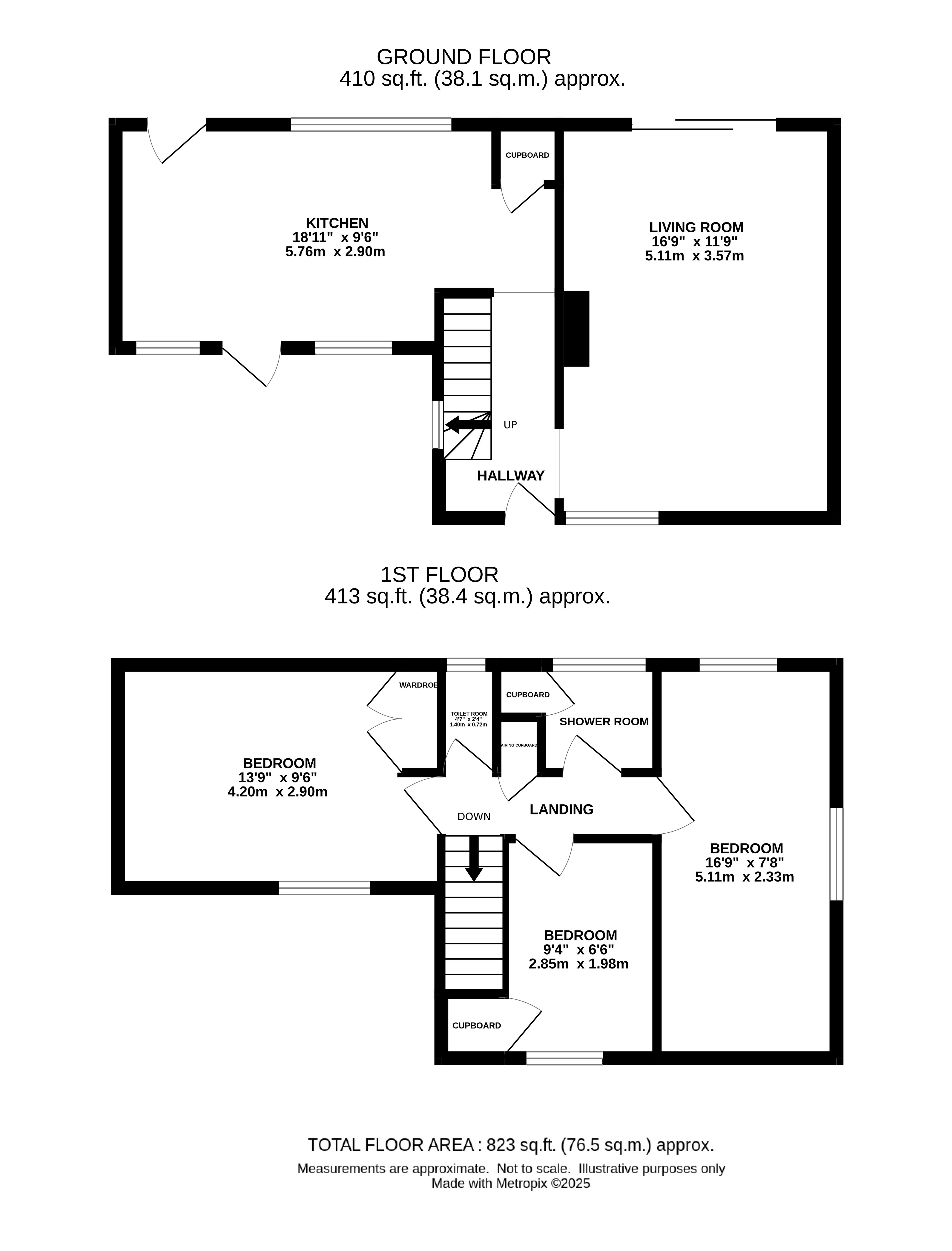 Upstairs Accommodation Three bedrooms and a shower room, w/c.