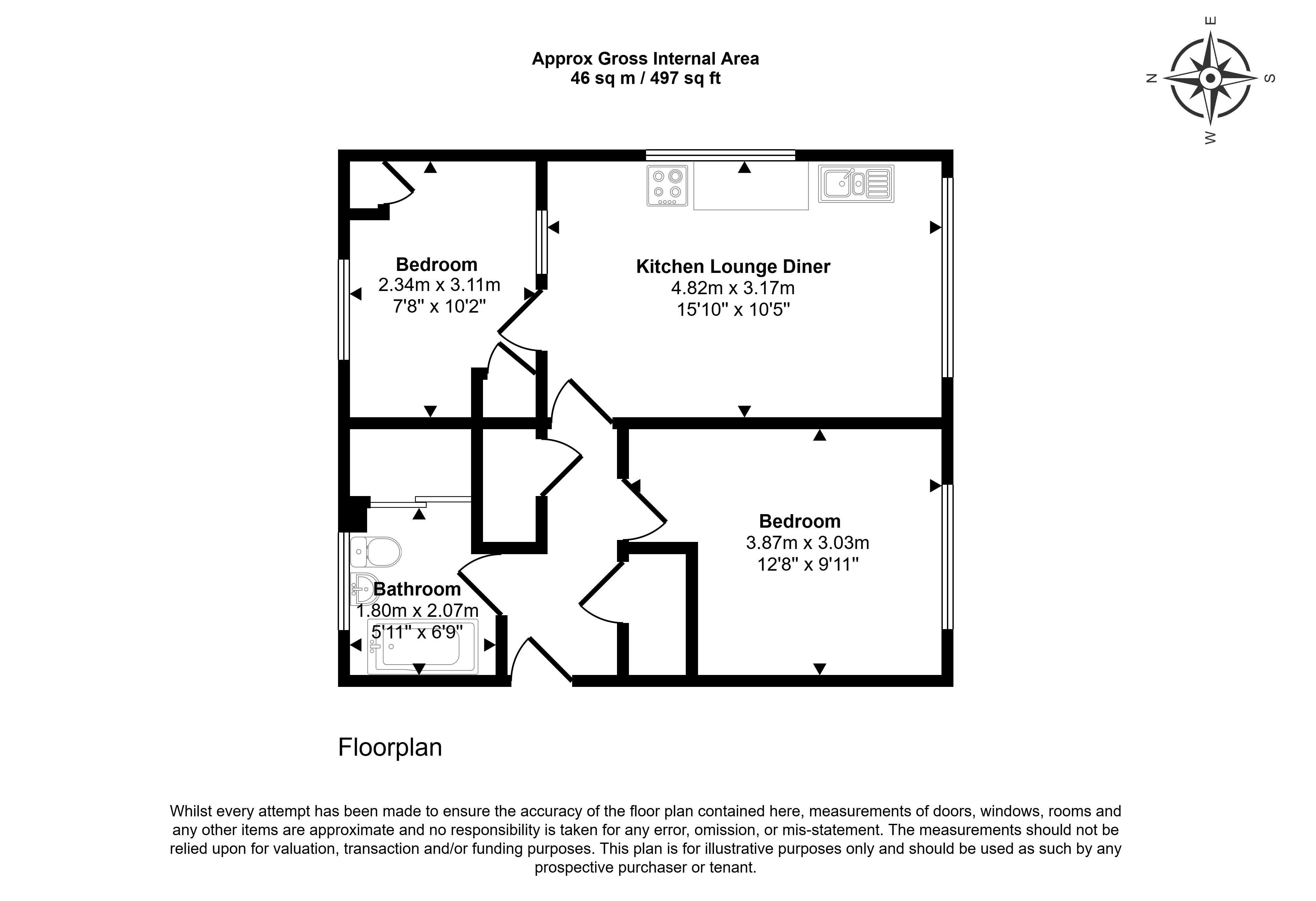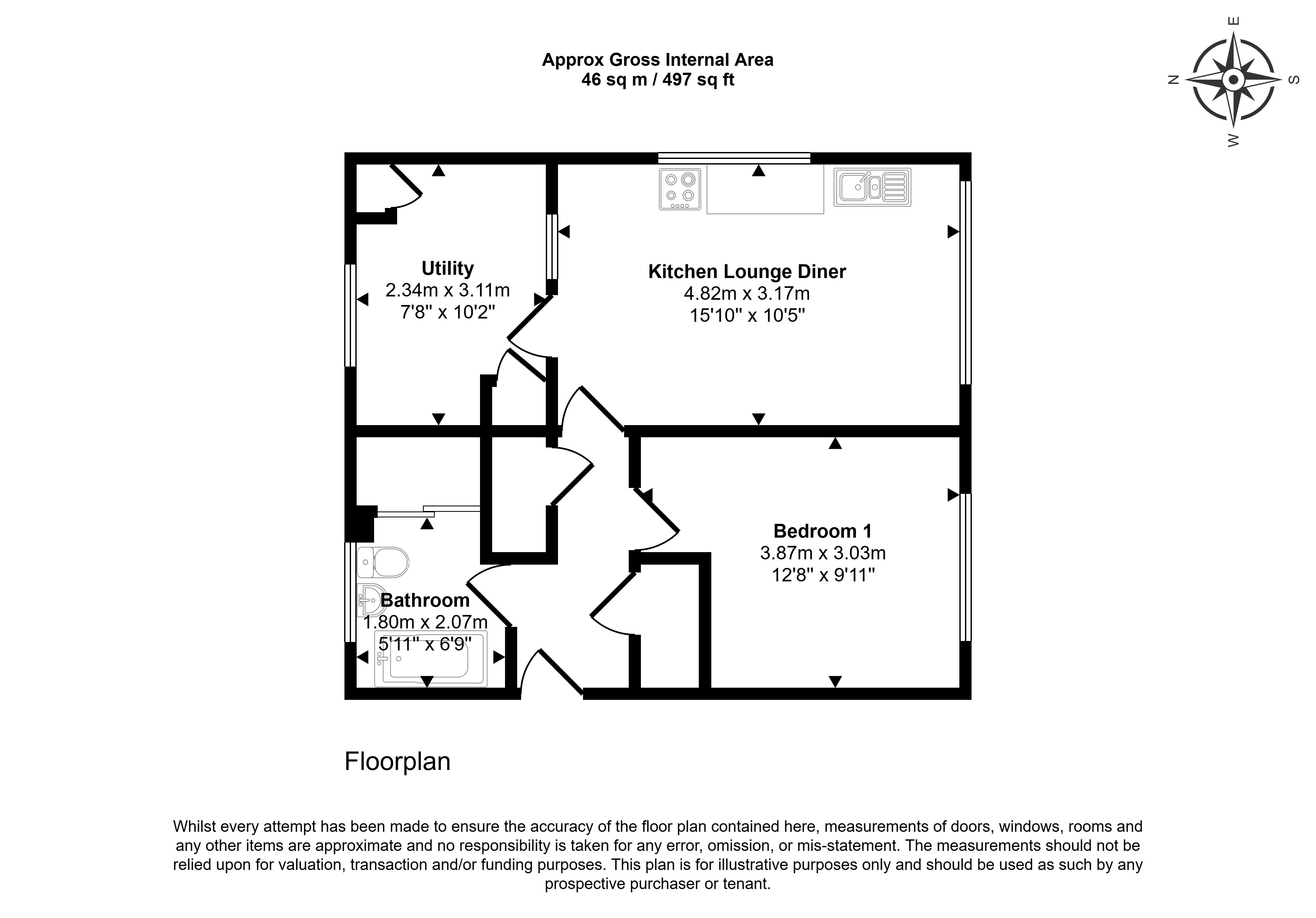 Comprising of an entrance hallway leading to a bathroom, bedroom, lounge/diner/kitchen and storage cupboard.