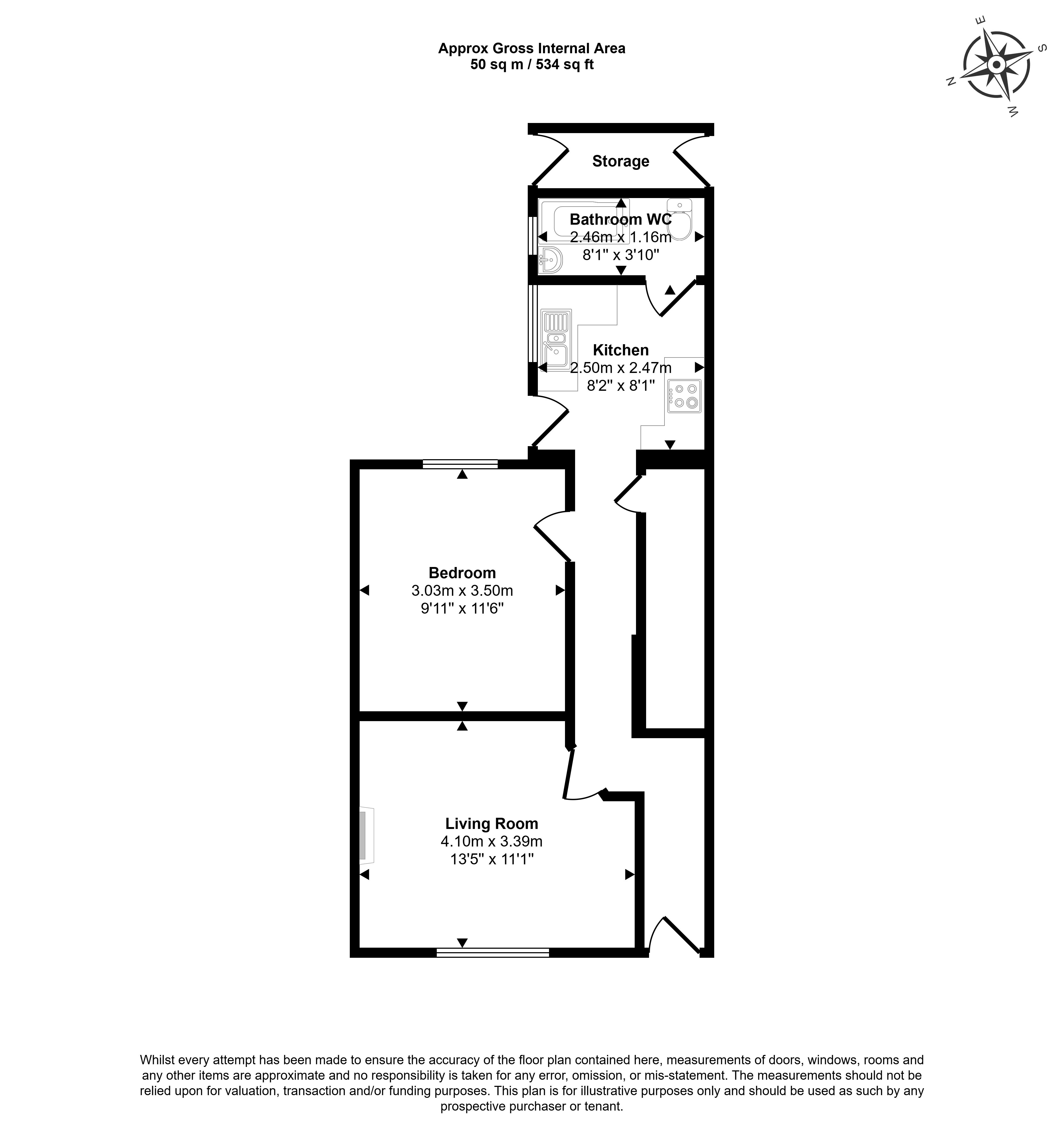 The property compromises of an Entrance Hall, a Living Room, a Kitchen, a Bedroom and a Bathroom.