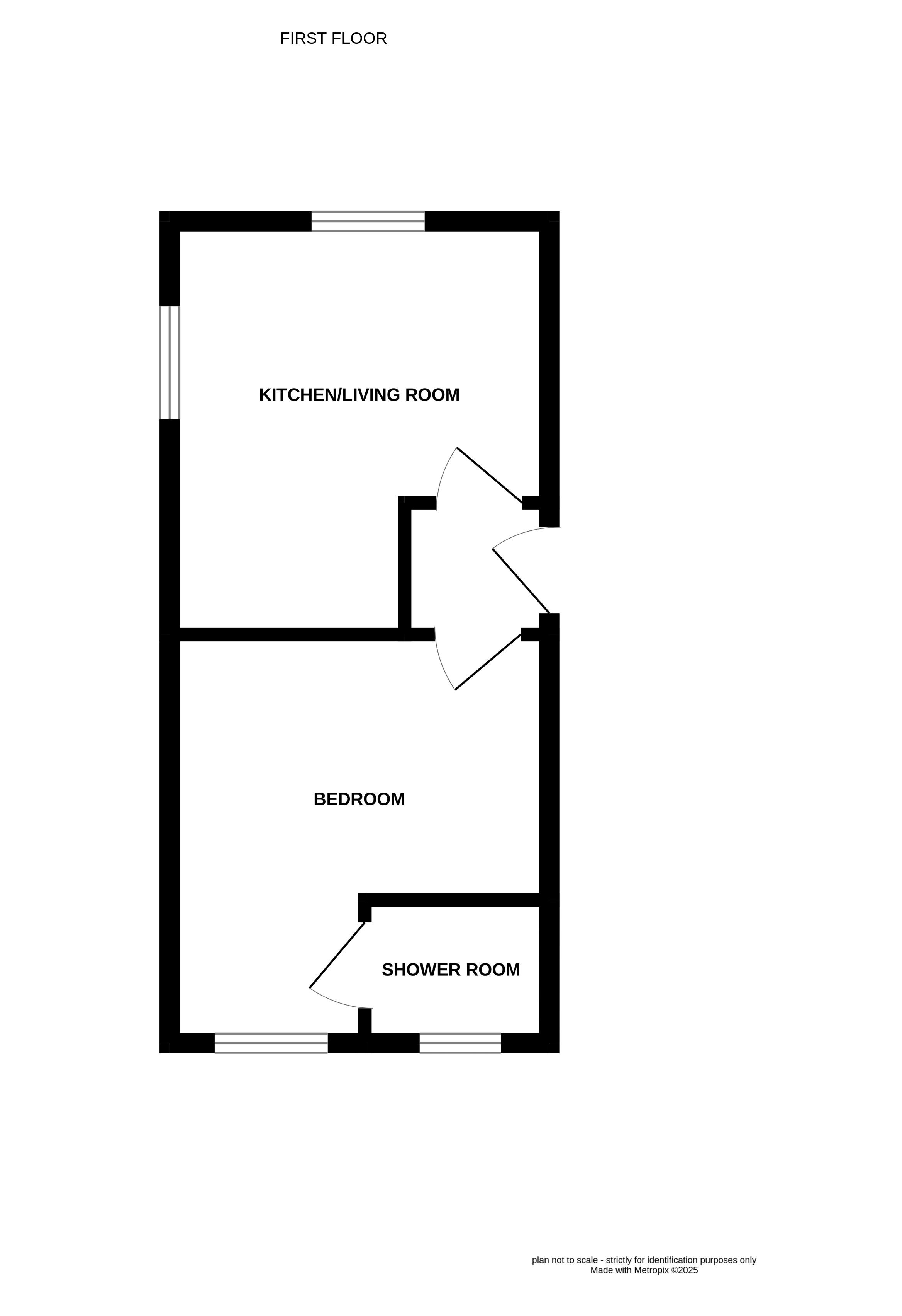 Living room/kitchen, bedroom and shower room to the first floor.