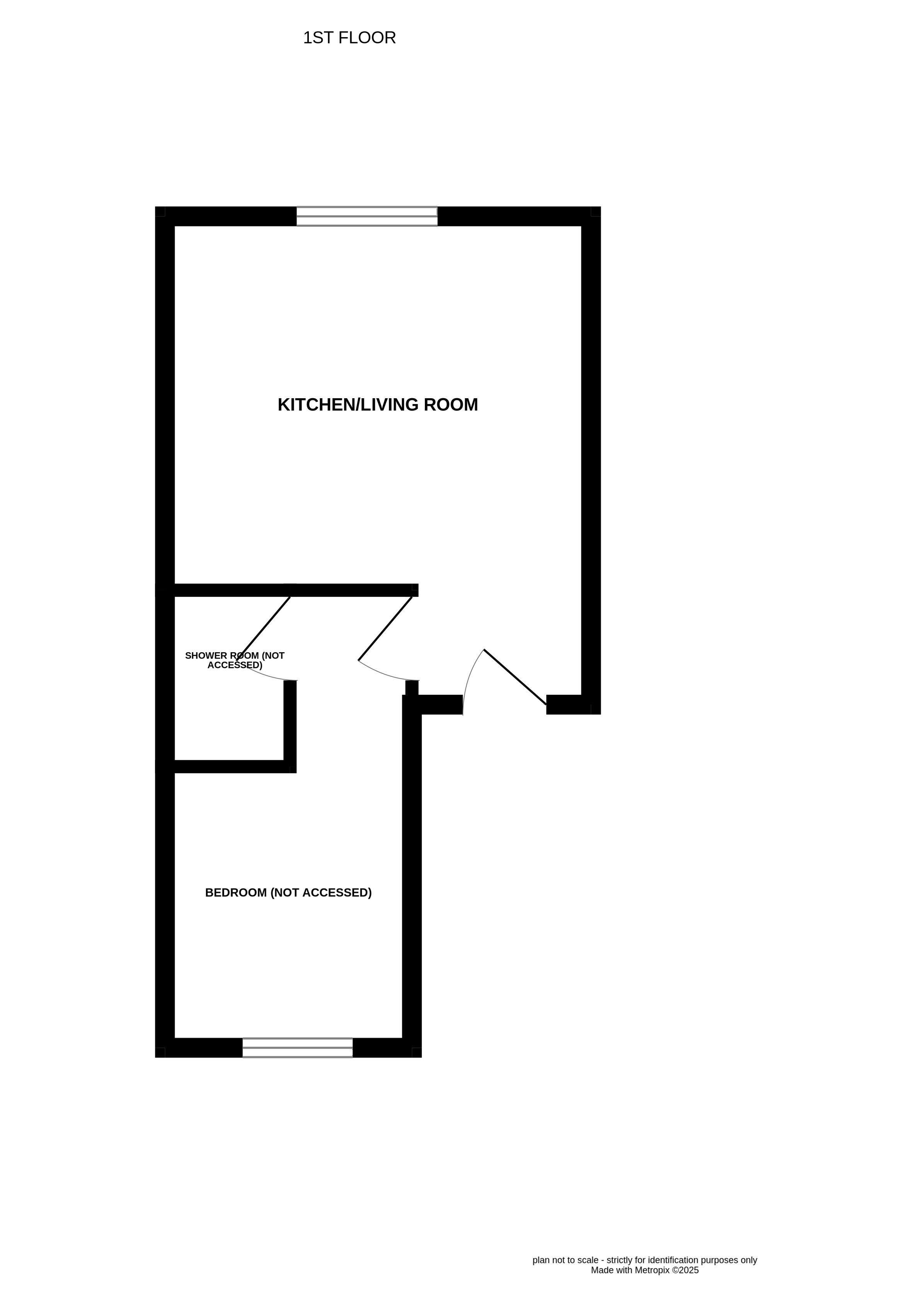 Living room/kitchen, bedroom and shower room to the first floor.