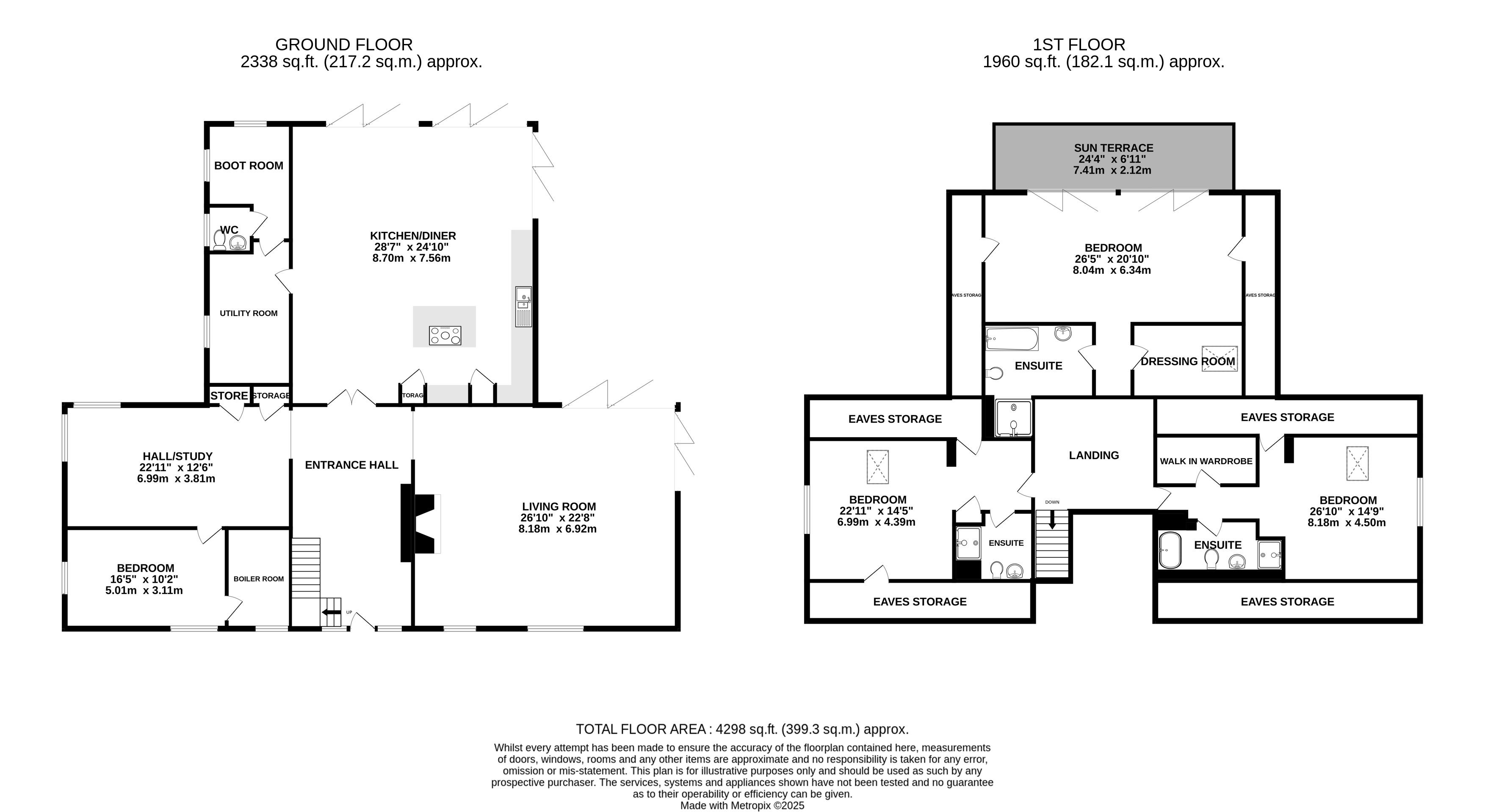 The property comprises a large entrance hall, living room with bi-folding doors to the gardens, open plan kitchen/diner with bi-folding doors to the garden, utility room, wc, boot room, a secondary hall, a study area, and a bedroom. On the second floor, the principal en-suite bedroom and separate dressing room benefits from bi-fold doors onto a sun terrace overlooking the gardens. There are two further bedrooms, both with en-suites.
