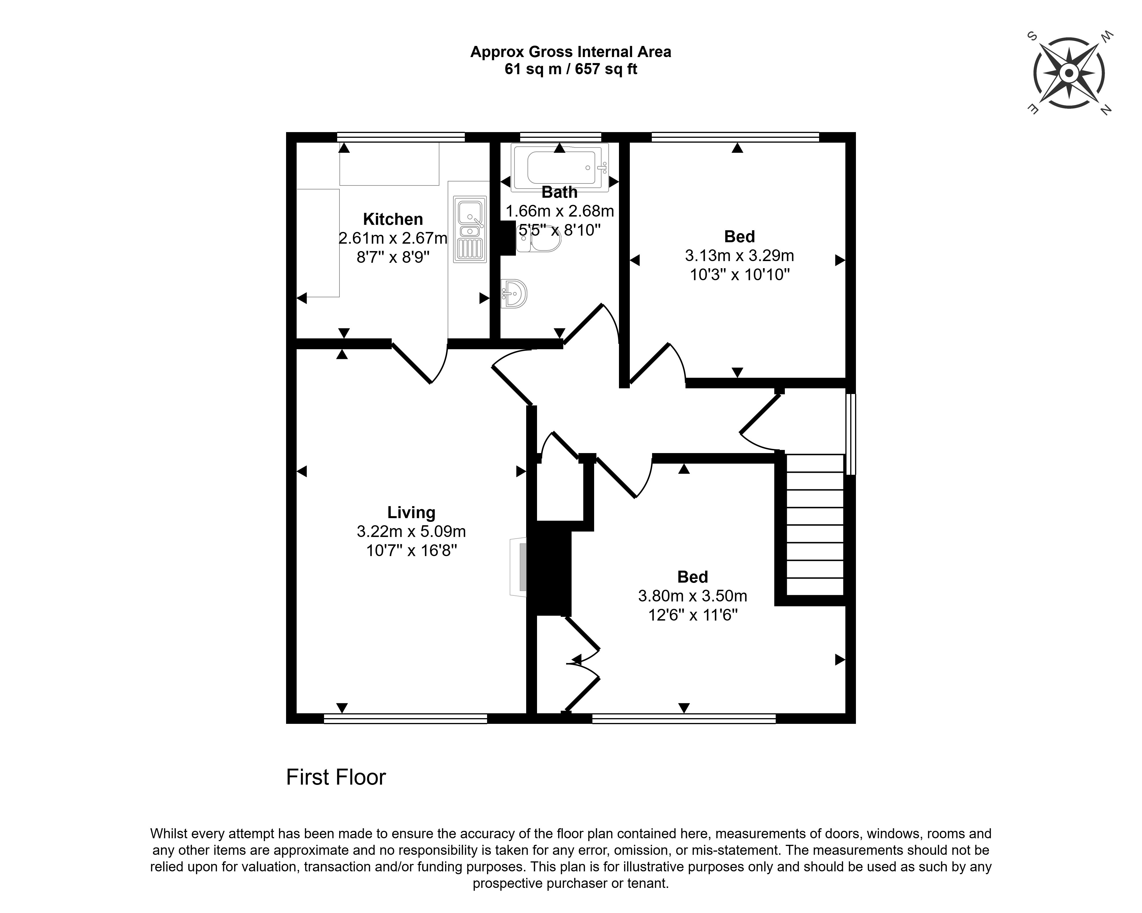 Approximate Gross Internal Area: 61 sq m (657 sq ft)