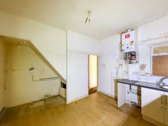 For sale by auction is this vacant two-bedroom terraced house, in need of improvement.