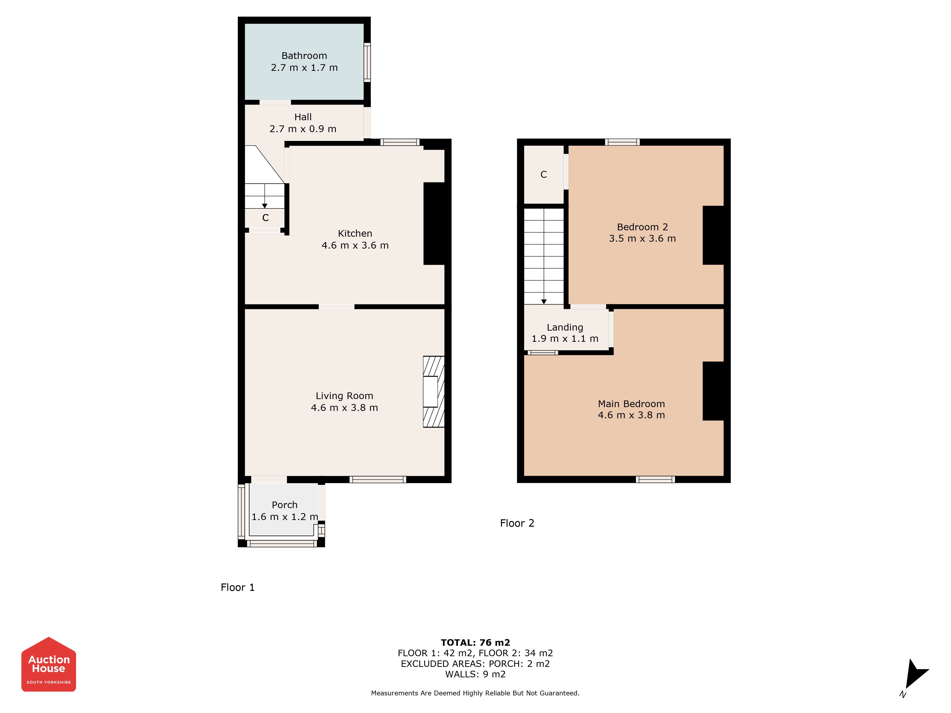 The property compromises of an Entrance Porch, a Living Room, a Kitchen, and a Bathroom to the ground floor. On the first floor are 2 double Bedrooms.