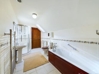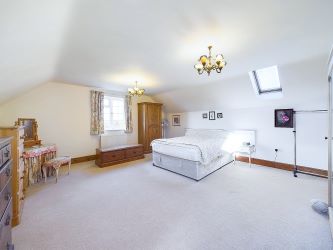 To the first floor is a galleried landing with a Velux window to the rear elevation. The generous master bedroom has a Velux to the front and a further window to the side yielding fantastic panoramic, field views and access to a Jack and Jill bathroom with a Velux window to the front, providing a four piece suite comprising panelled bath, low flush WC, pedestal wash hand basin and a double corner shower cubicle, a heated chrome towel rail, part tiled walls, tiled flooring and a door to the landing. Bedroom two is a spacious double, with a porthole window to the side and a Velux to the rear.