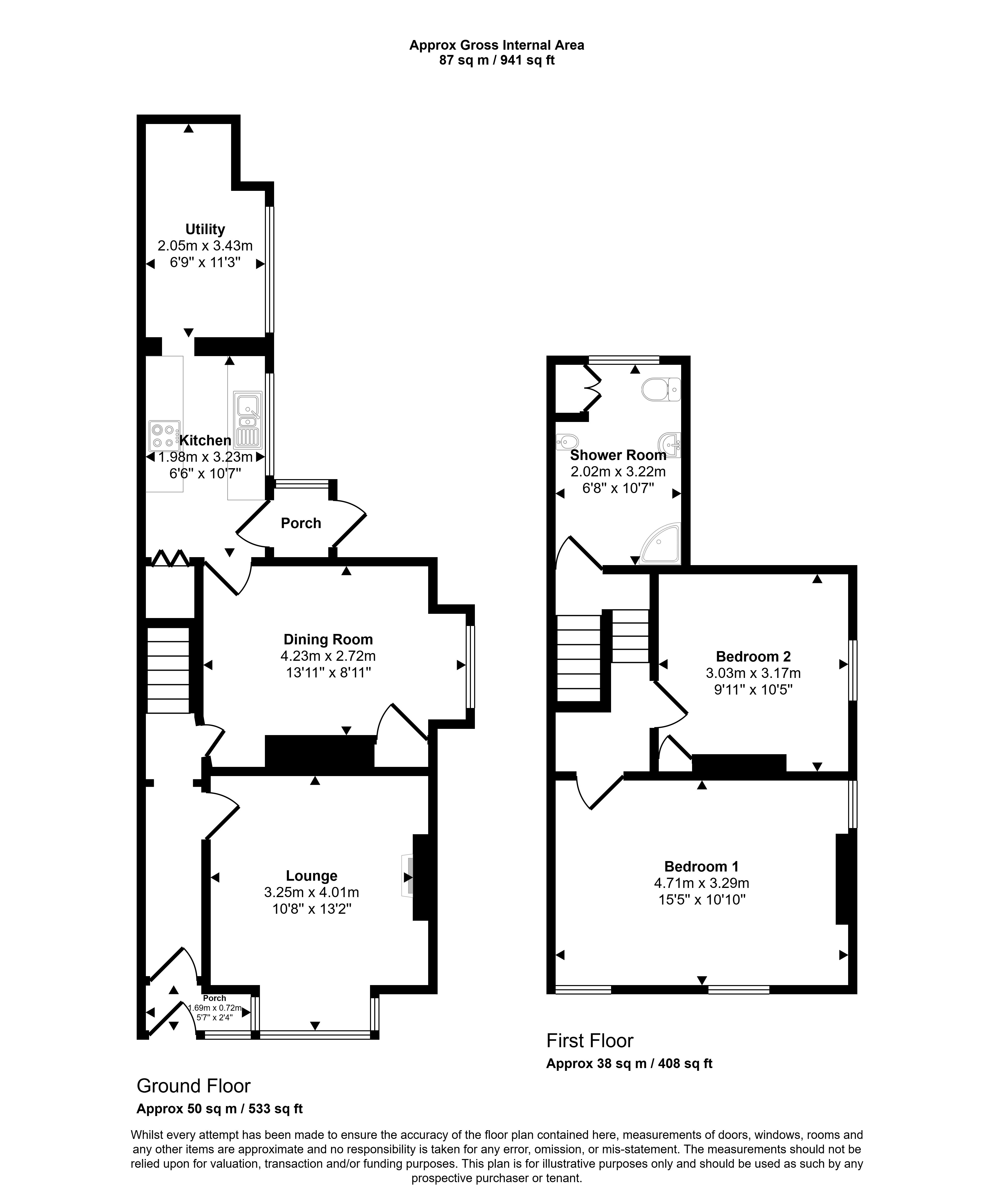 Inside, the home comprises a spacious living area, kitchen, two well-proportioned bedrooms, and a family bathroom. The layout presents excellent potential to reconfigure and extend (subject to planning permission), creating a truly bespoke home.